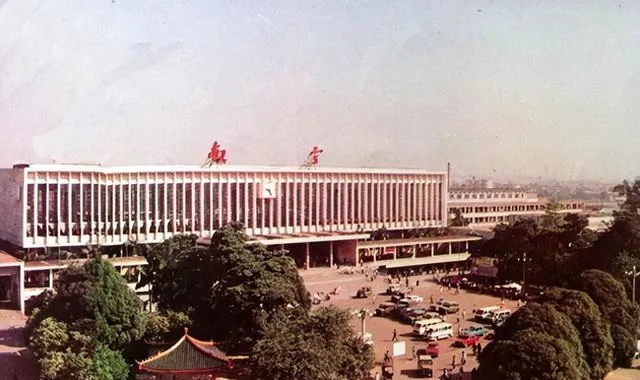 火车站这张,很多人应该都熟。门面方正,立面一排排竖线很醒目,上面“南宁”两个字一挂,辨识度一下就出来了。最有意思的是广场,车不多,人也不算挤,周围还有大树压着场子。现在的车站讲效率、讲通达,过去的车站则多了一点从容。送站、接人、拎着编织袋站在门口等,都是那个年代很具体的生活片段。你家里以前有没有人从这里出发,去外地上学或者工作?