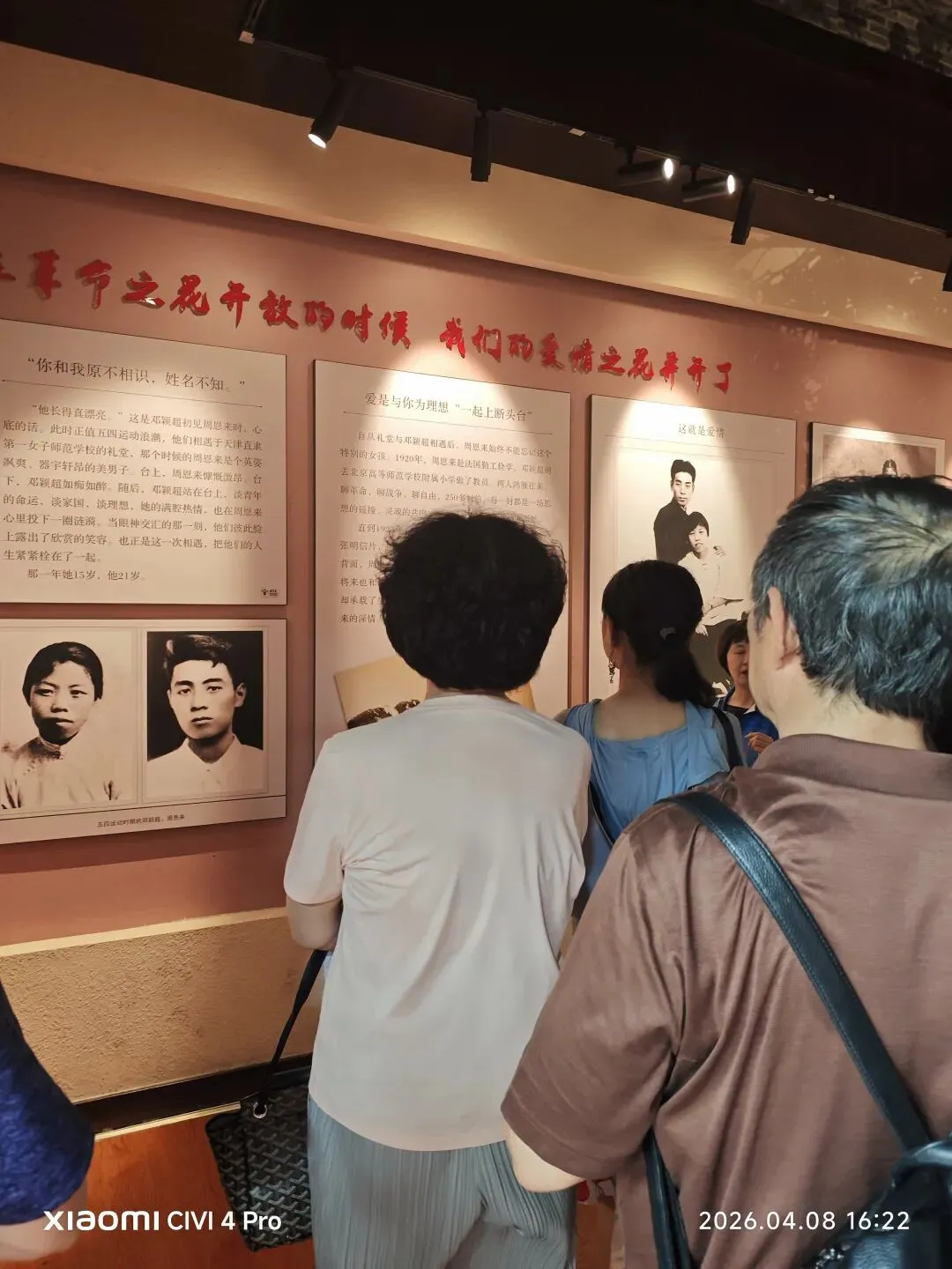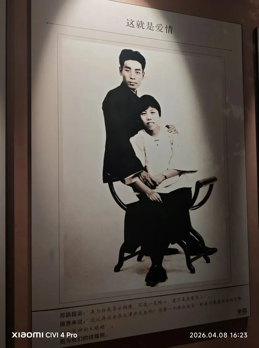 二楼展区更藏温情与初心。其一叙写周邓二人伉俪情深,少年相逢校园,目光相知心动,开启一段纯粹浪漫的相伴岁月。
