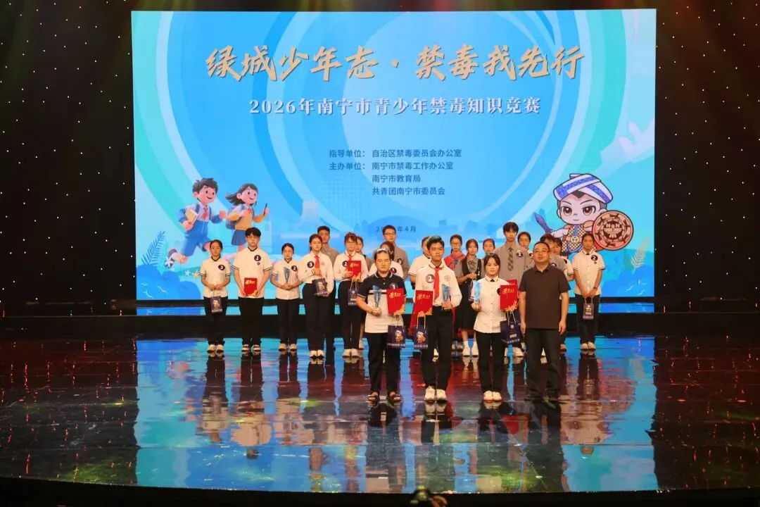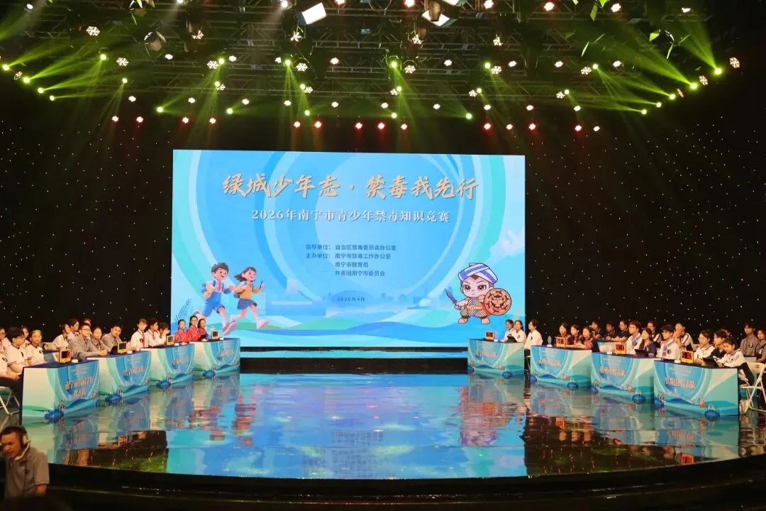 2026年4月11日,由自治区禁毒委员会办公室指导,南宁市禁毒工作办公室、南宁市教育局、共青团南宁市委员会联合主办的2026年南宁市青少年禁毒知识竞赛总决赛,在南宁市融媒体中心成功举办。