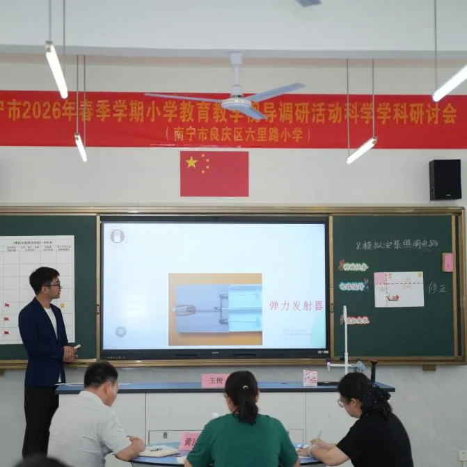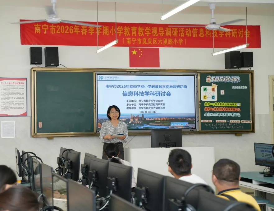 4月10日,南宁市2026年春季学期小学教育教学视导调研活动在南宁市良庆区六里路小学举行。视导涵盖科学、信息技术、综合实践和心理四个学科,南宁市教育科学研究所、城区两级学科教研员及各小学骨干教师代表共同深入课堂,共研教育发展新路径。