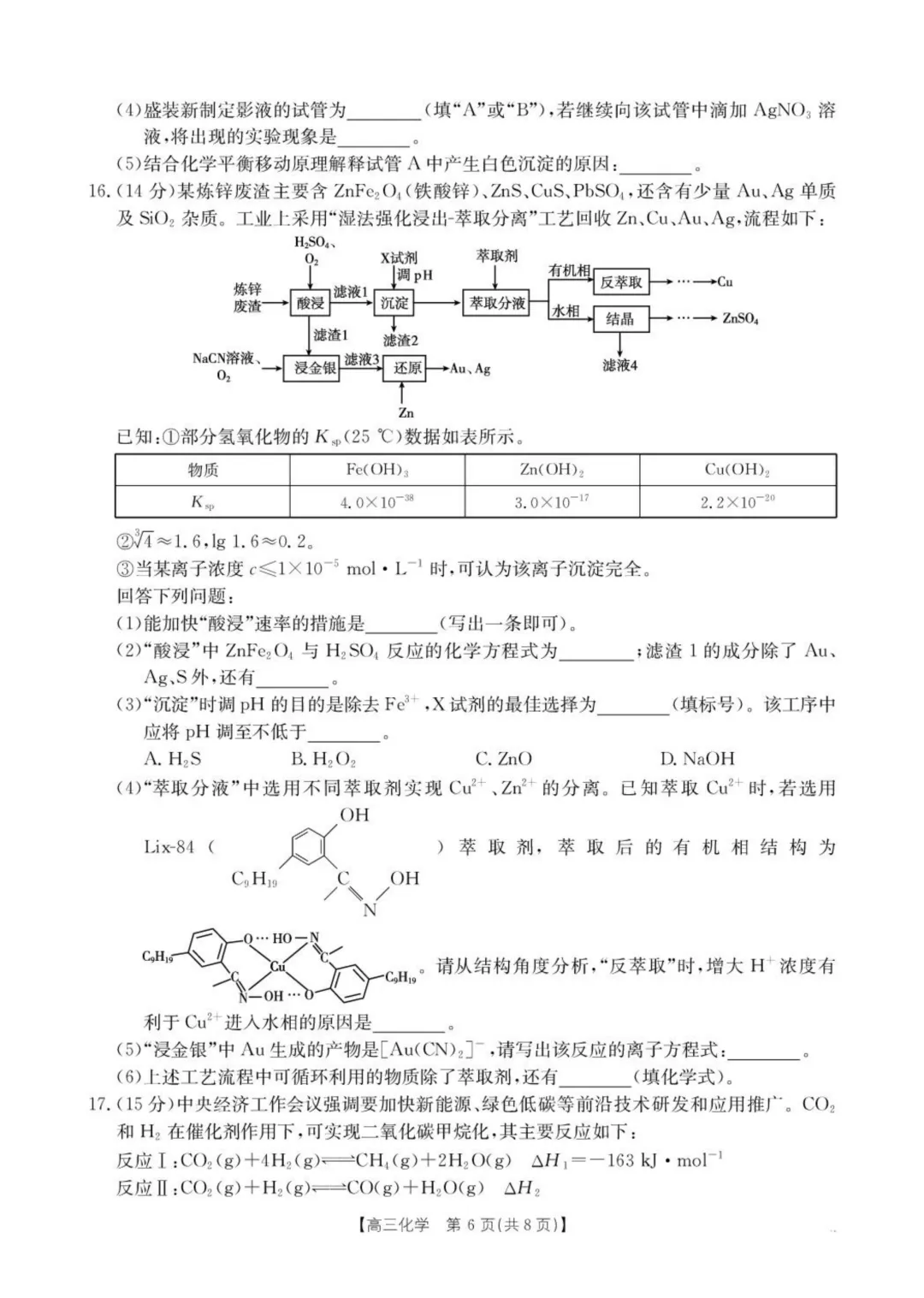 六、高中化学二轮复习小题精练/大题精练