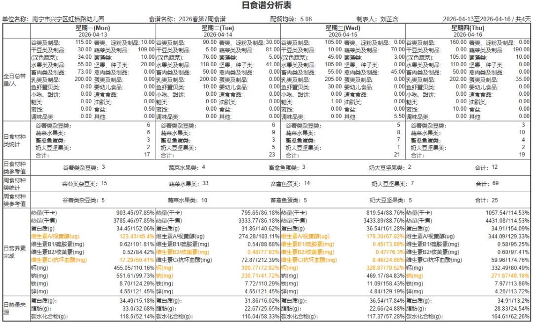 【美好“食”光】南宁市兴宁区虹桥路幼儿园第七周营养食谱(2026.4.13——4.17)