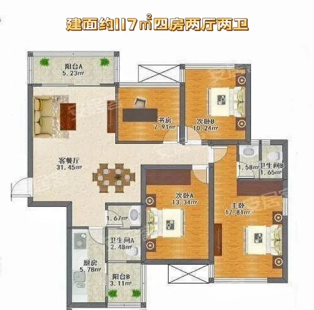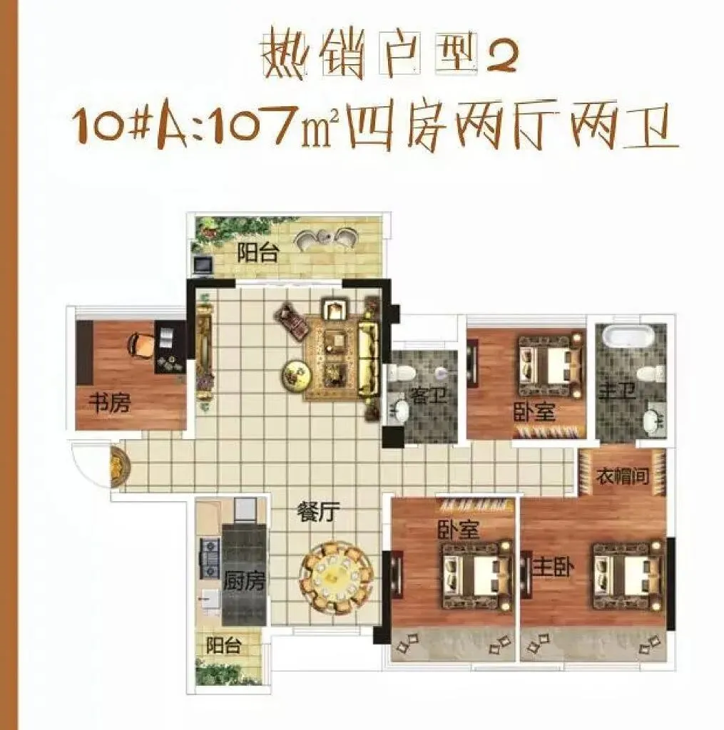 在售户型:建面约107-138㎡实景四房。