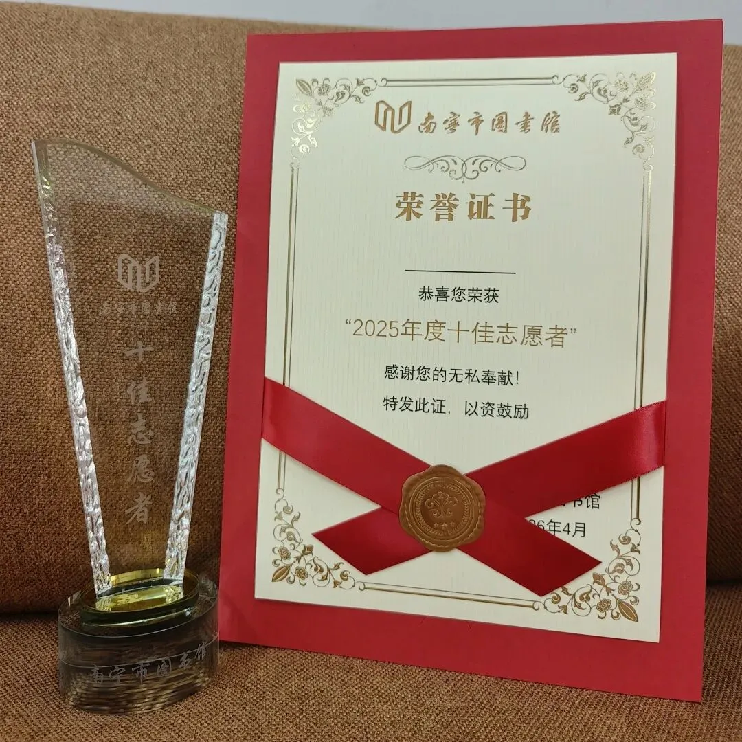 为了感谢志愿者们的无私奉献,表彰阅读之星们的坚持与热爱,南宁市图书馆将于4月18日上午9:30在二楼读者服务大厅举办颁奖典礼,为“十佳志愿者”与“阅读之星”颁发荣誉证书与定制奖杯,欢迎各位读者到场见证荣耀时刻。