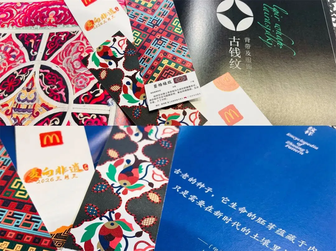 同时,黄清穗老师还与广西麦当劳开展文创共创,将壮纹元素与现代审美相结合,让大家在品尝美食、动手体验的过程中,轻松领略壮纹文化的深厚底蕴与独特魅力。