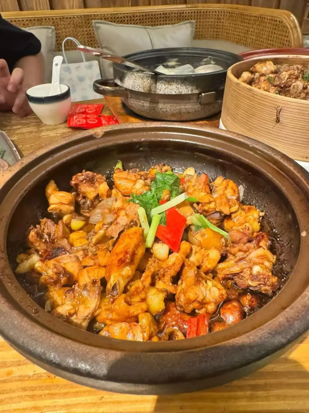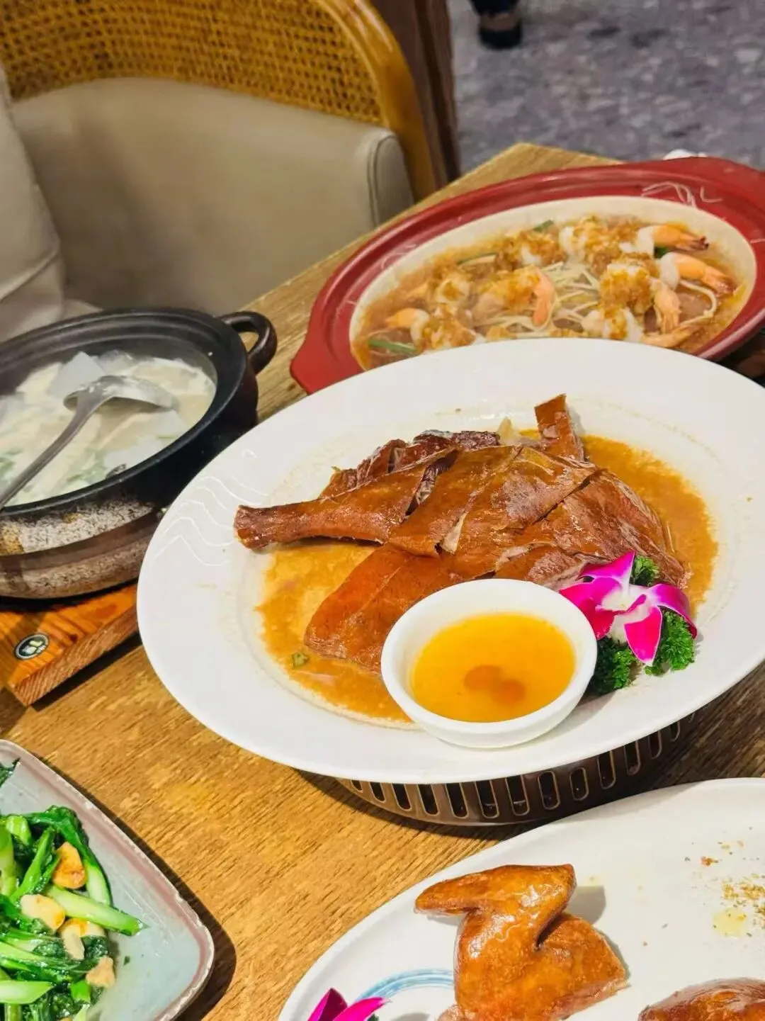 如果你们是晚上去吃正餐,那就一定要点他们家的招牌烤鹅和烤乳鸽!皮脆肉嫩,蘸着特制的酸甜酱,一点都不会觉得腻。再配上一大锅热气腾腾、滋滋作响的砂锅鸡,肉质紧实又入味,大家赶紧带上家人朋友去尝尝吧!