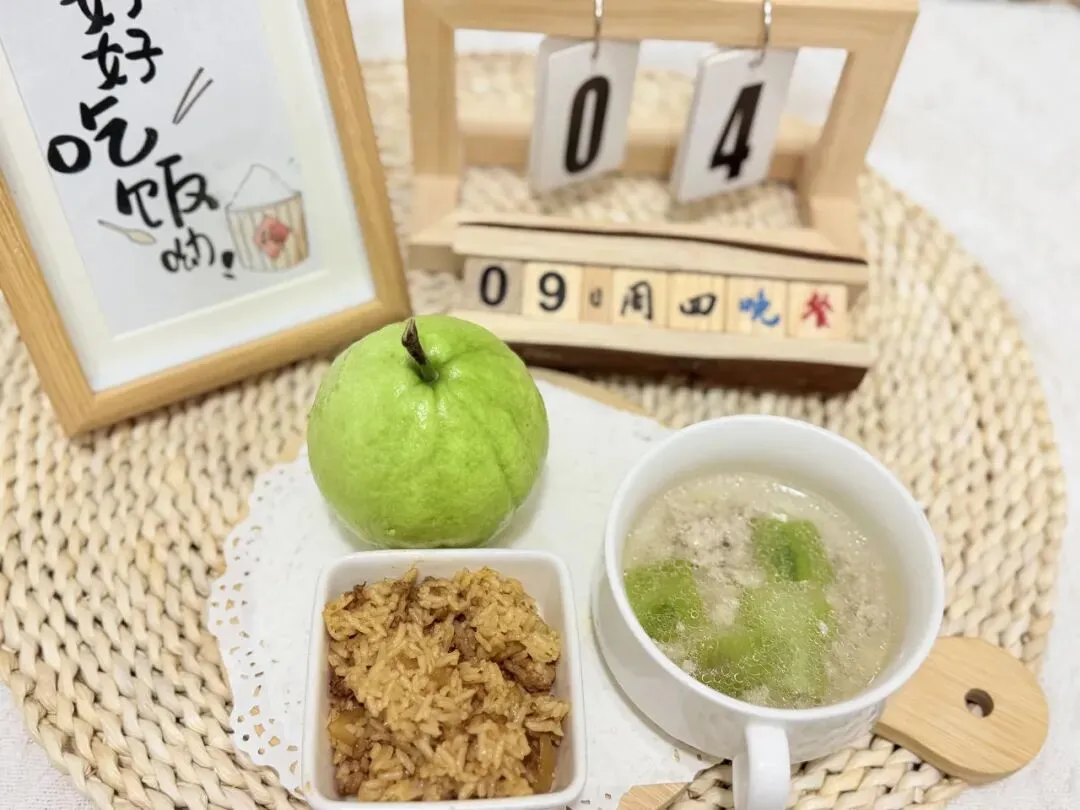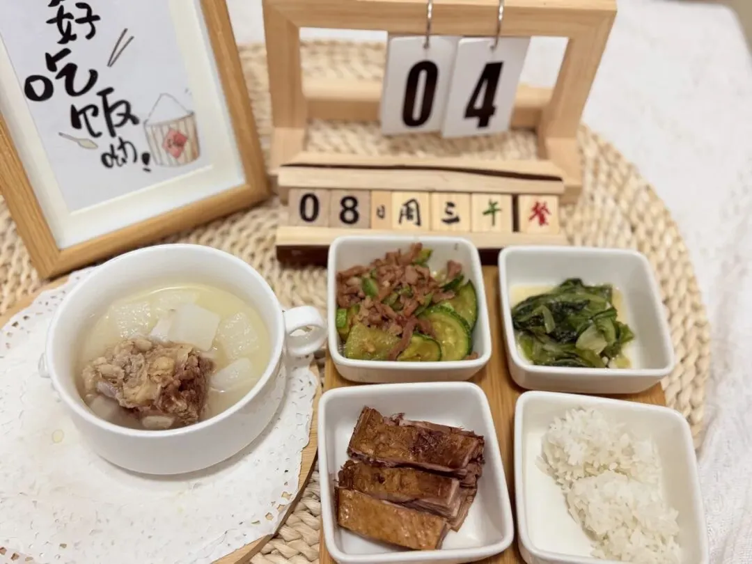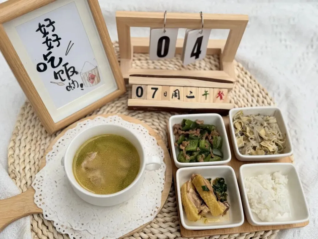 白灼菜心、冬瓜筒骨汤、香软米饭