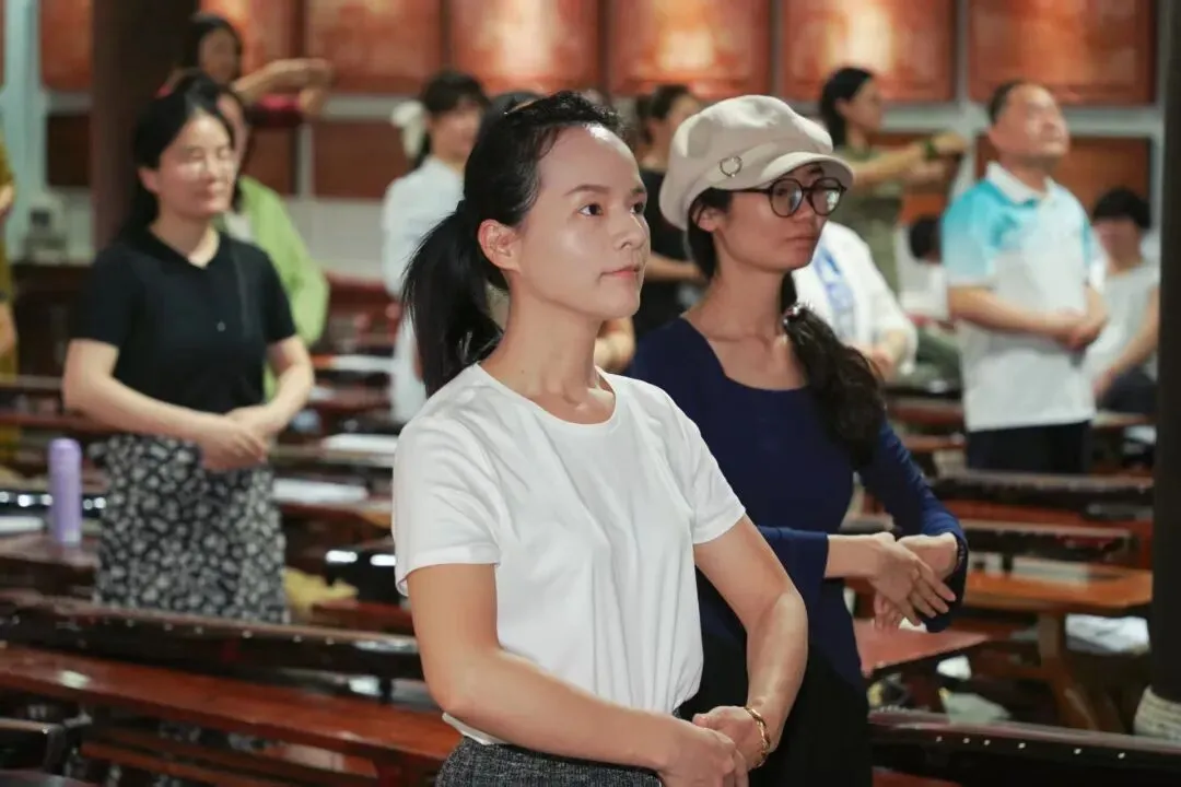 课前,孔庙礼仪老师登台亲自示范,带领全体学员系统学习传统揖礼。