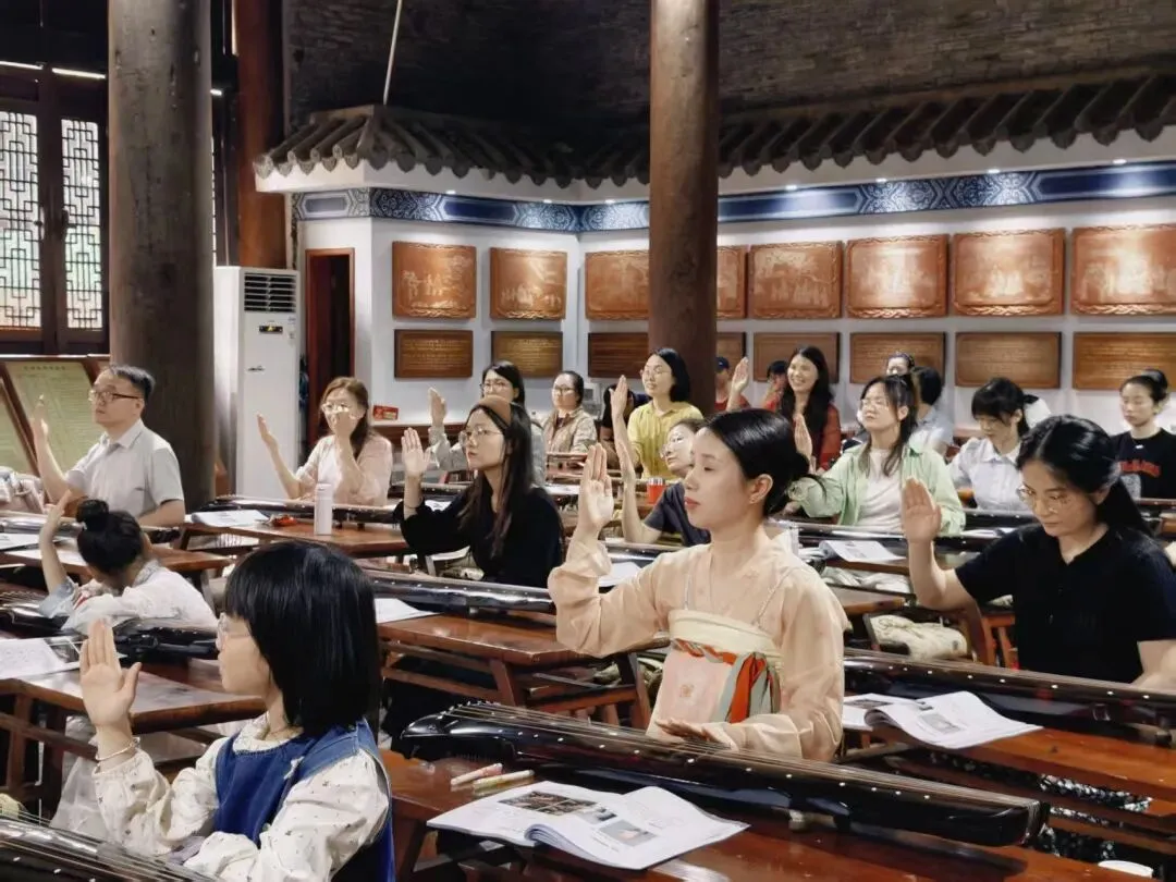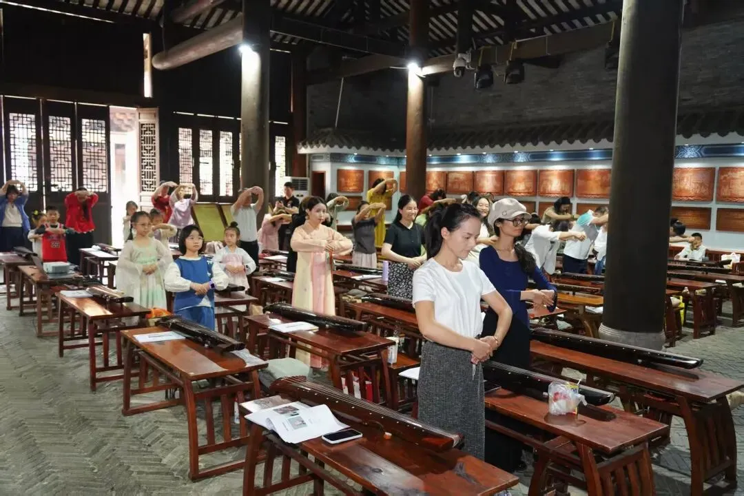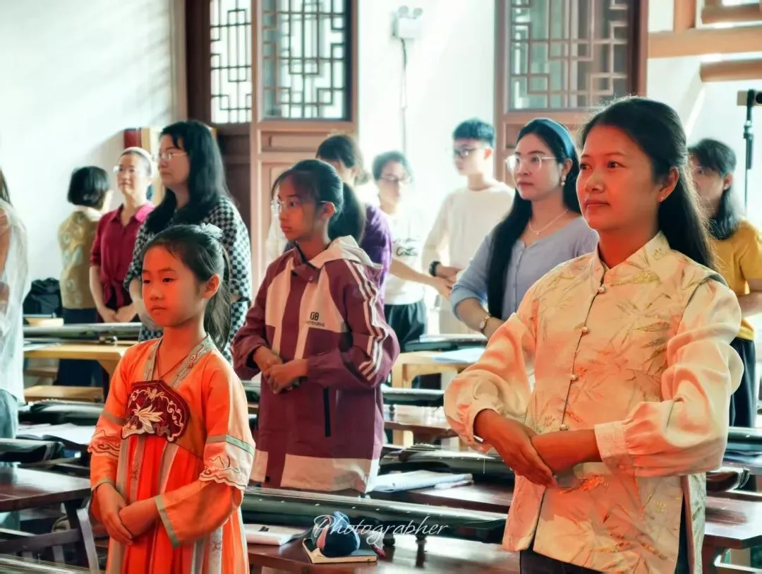 “不学诗,无以言;不学礼,无以立。”礼乐文化是中华传统文化的核心,而古琴正是礼乐文化的重要载体。在正式抚琴授课之前,一场庄重的传统礼仪教学拉开了序幕。古琴公益班的全体师生共同学习了表示敬意的传统礼仪——揖礼。