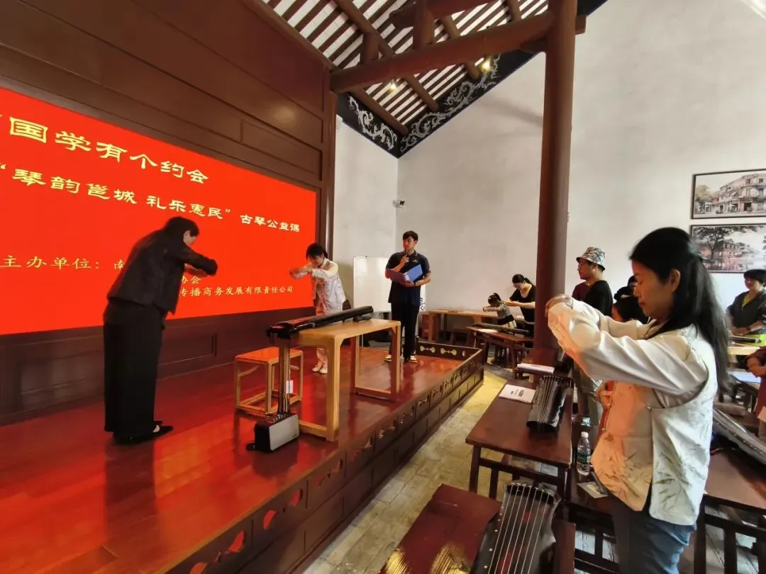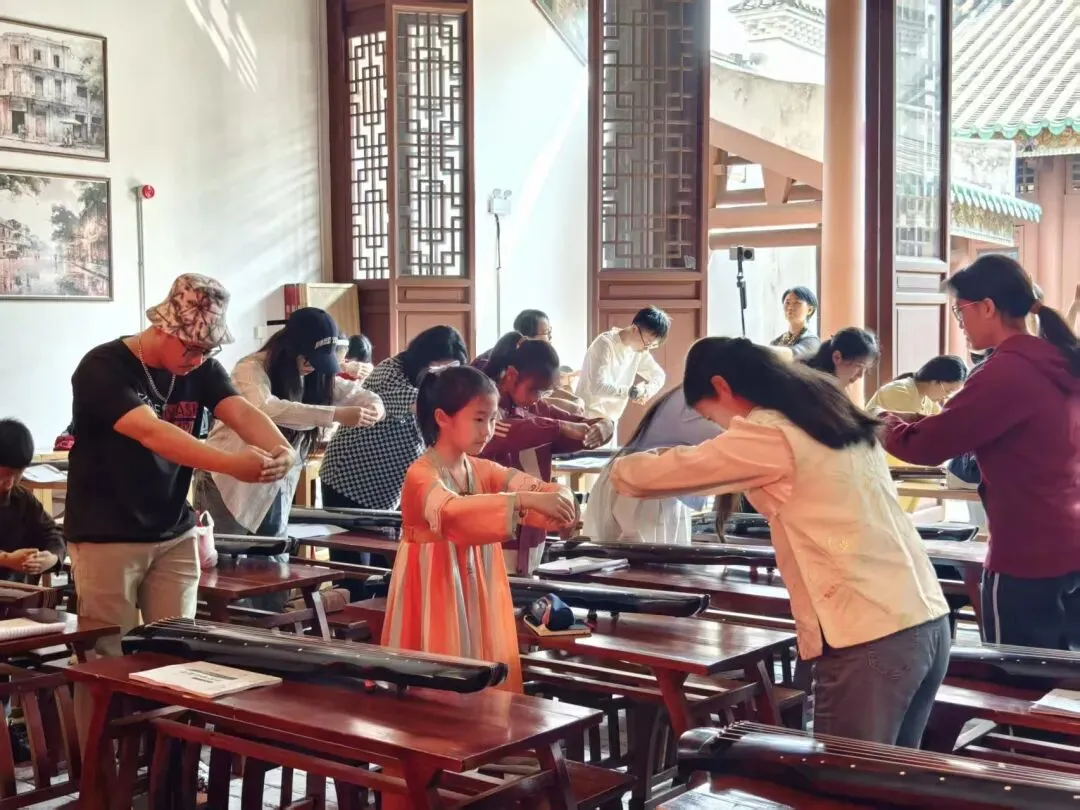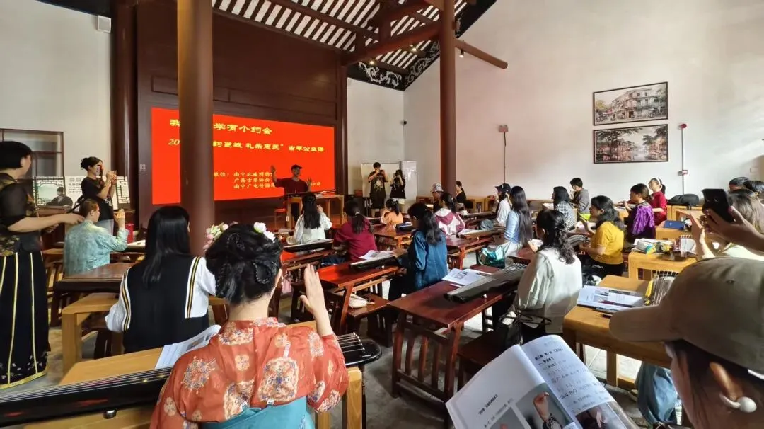 古建为琴台南宁骑楼文化陈列馆位于三街两巷历史文化街区核心区域,该街区保留着清代至民国时期的民居建筑群,青砖灰瓦、岭南骑楼风貌保存完好。古琴公益课在此扎根,实现了“古建+古琴”的双古叠加——百年建筑成为千年雅乐的天然“琴台”,古琴的清越之音在骑楼廊柱间回荡,使静态的历史遗存获得“可听”的动态呈现。体现了“大雅入市井”的文化姿态,市井喧闹,琴音清和淡雅,形成“闹中取静”的听觉平衡。古琴从“小众雅好”走向“大众共享”,正是通过与市井生活的并置与融合。社会价值的民生落地:零门槛惠民,去神秘化:从“基础开指法”教起,打破古琴“高深难学”的心理壁垒。