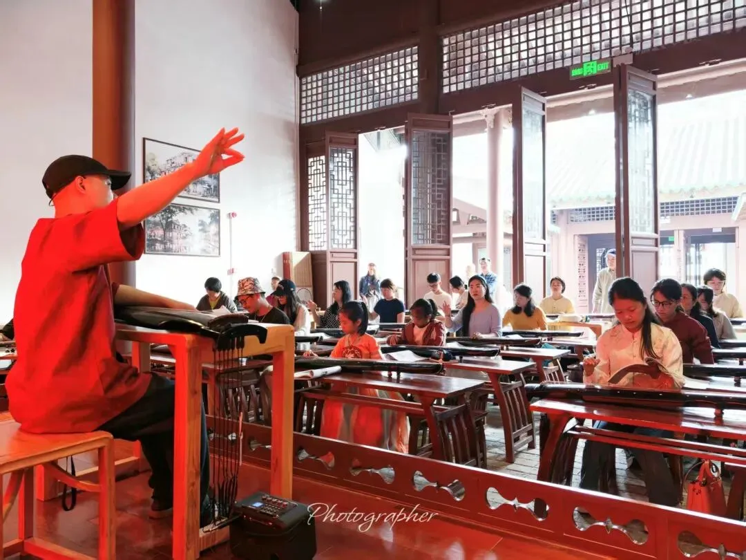 刘礼易副会长秉承传统的古琴教学方法,针对零基础学员设计循序渐进的课程。学员在非封闭环境中习琴,反而更能体会古琴“大隐隐于市”的心境修炼。以市井为舞台,让古琴从“文人书斋”走向“百姓街巷”;以公益为桥梁,让非遗从“被保护”走向“被使用”。这种融合,既为古琴传承找到了最具烟火气的土壤,也为历史文化街区的“非遗+文旅”模式提供了新的实践样本。