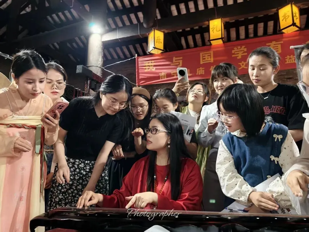 李俊萍会长在南宁孔庙古琴公益教学:技艺、文化与儒家理念的融合,不仅注重“技艺与文化并重”,更将儒家“仁义礼智信”的核心精神贯穿于古琴传播与传承的实践中。