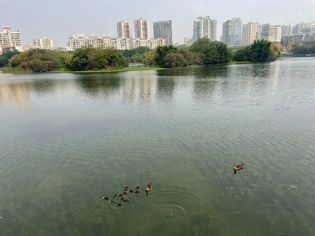 湖中,各种水鸟嬉戏游玩,还有鸟妈妈带着一群幼崽,在湖边肆意游荡,憨态可掬,让人忍不住驻足观望。