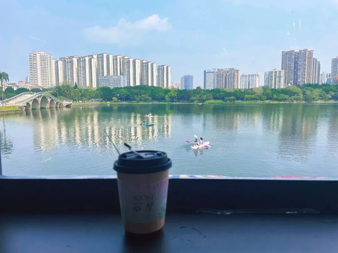 逛累了,还去了新开业的玻璃书屋打卡,点上一杯饮料,坐在窗边,惬意地欣赏着外面的水上滑板运动,清凉又舒适,这才是夏日周末该有的松弛感。
