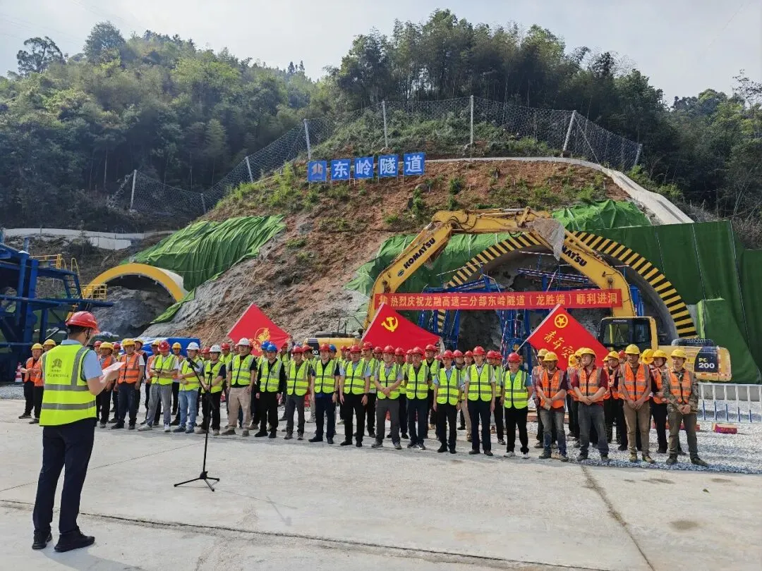 4月10日上午,在龙融高速东岭隧道(龙胜端),伴随着挖掘机破土轰鸣,隧道洞口正式开挖进洞。这是龙融高速全线第五条启动掘进的隧道,也是龙融高速啃下的又一块“硬骨头”。