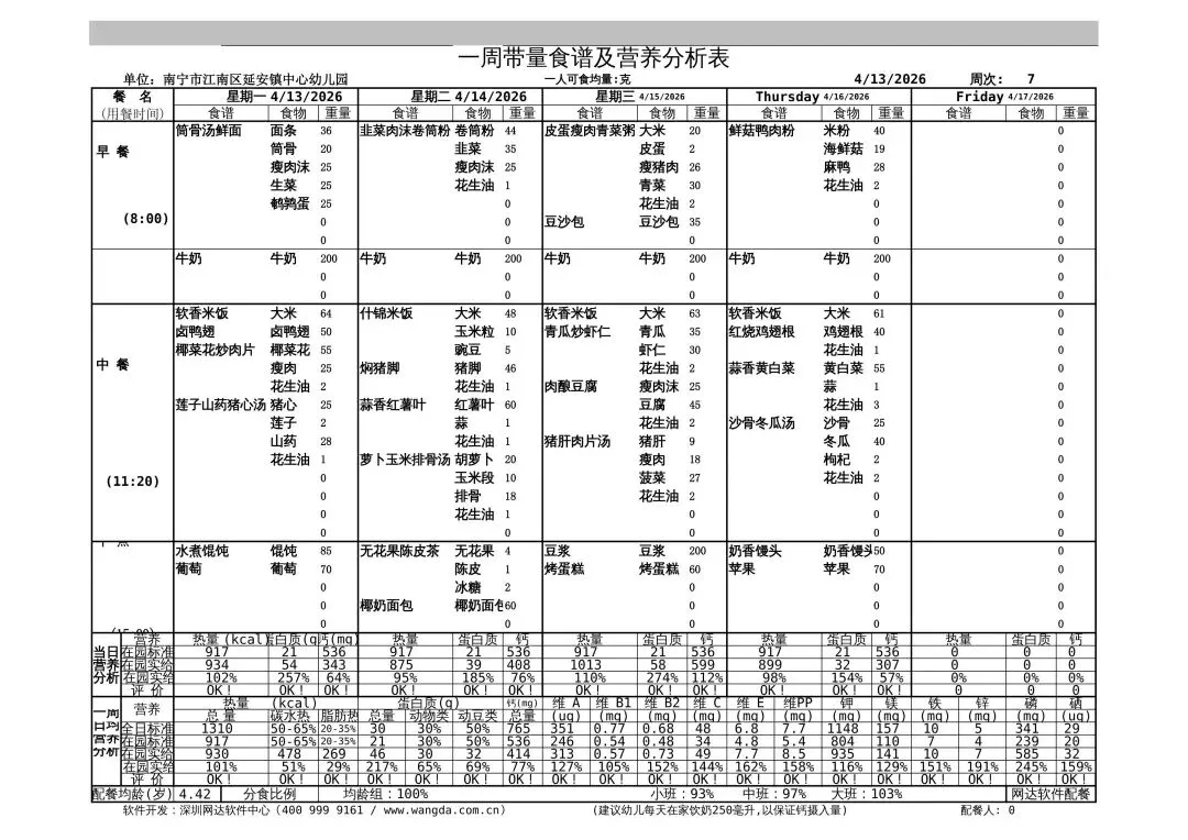 亲爱的家长朋友们,幼儿的健康成长离不开科学营养的饮食搭配!我园每周精心定制的带量食谱已新鲜出炉,每一餐都严格遵循幼儿营养需求,精选当季新鲜食材,合理搭配蛋白质、维生素、膳食纤维等营养元素,确保宝贝们吃得健康、吃得开心!