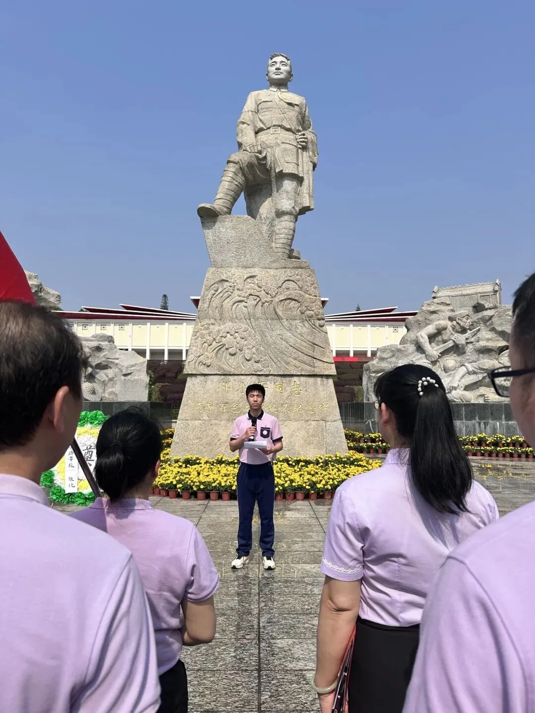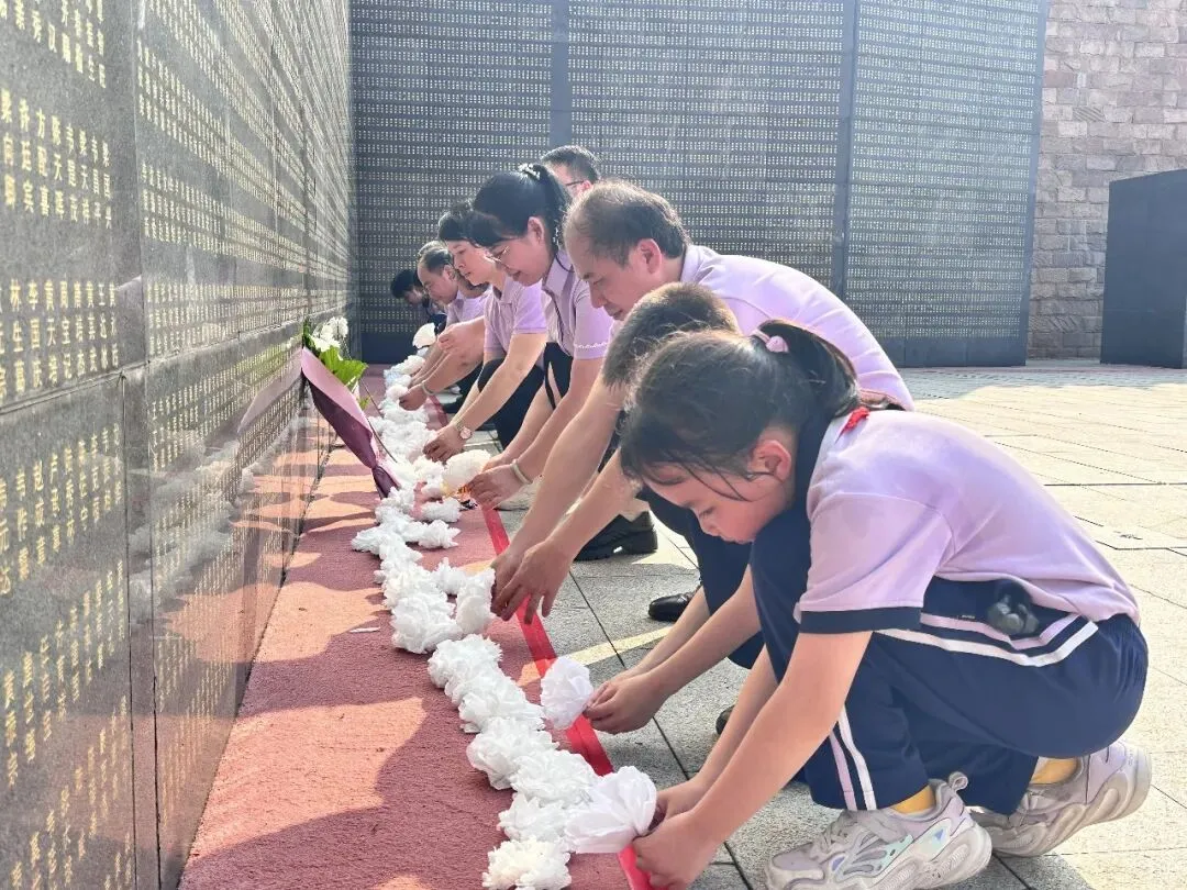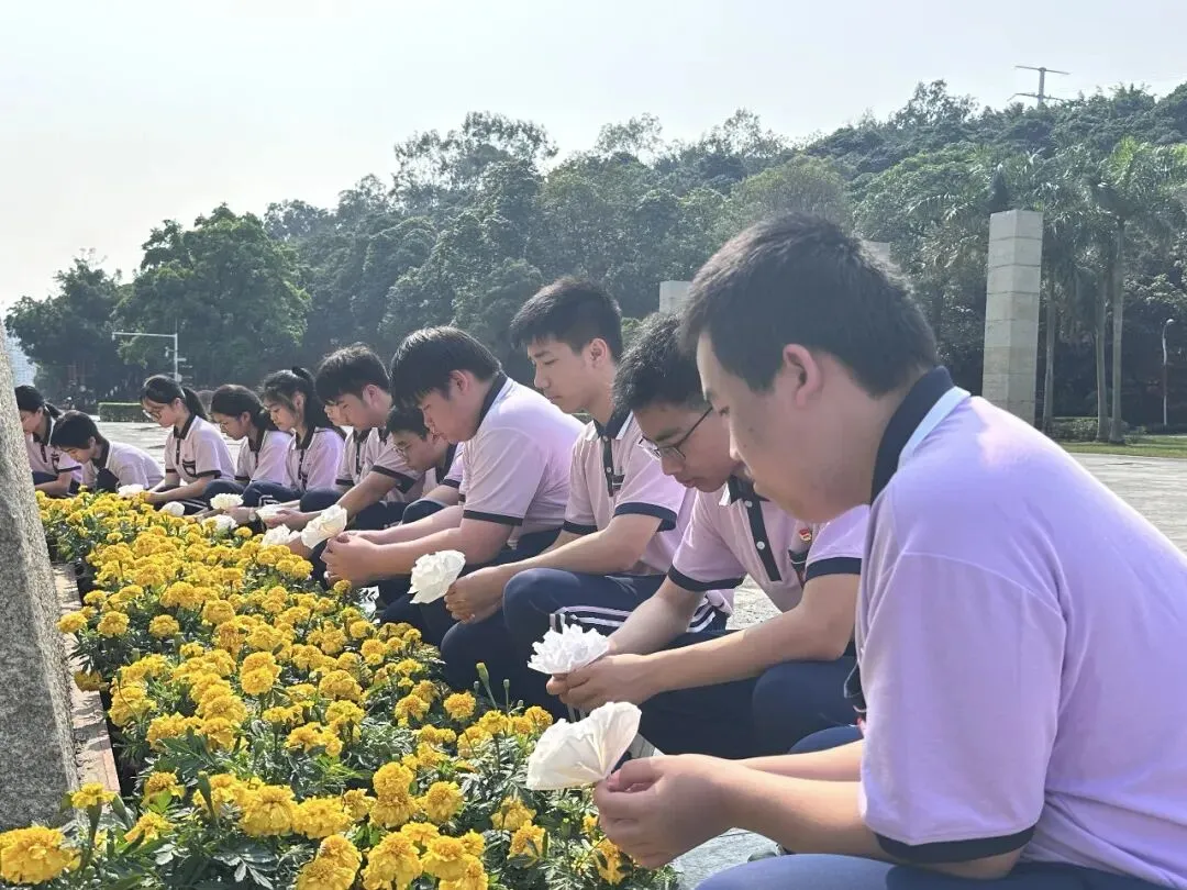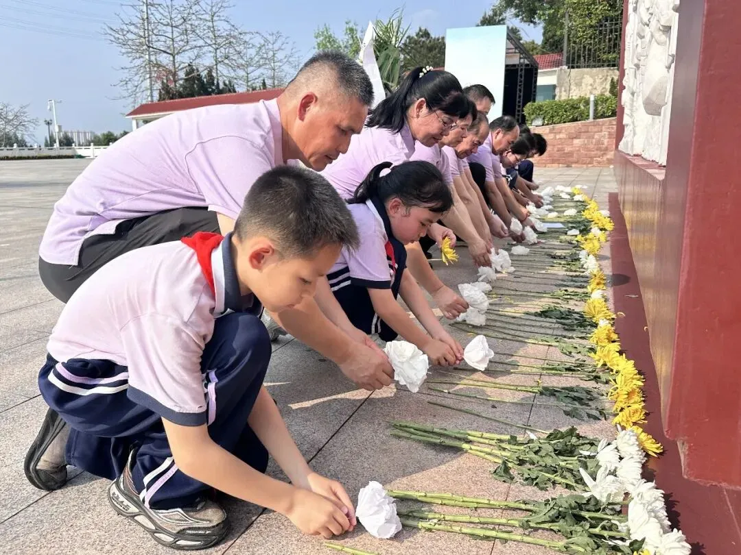 活动现场,全体学生神情肃穆、列队整齐。学生代表手捧亲手制作的花圈,敬献纪念碑,寄托哀思与崇高敬意。八年级黄梓源同学代表团、队员发言,情真意切,饱含对革命先烈的哀思与敬仰。