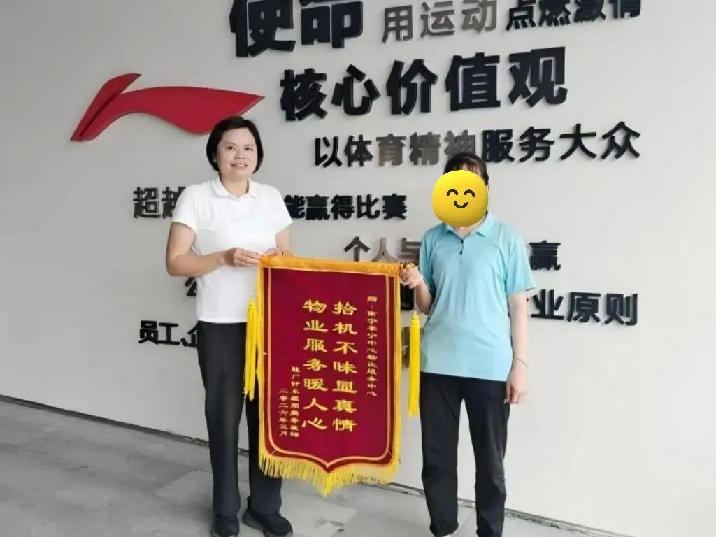 3 月 20 日,南宁东盟李宁中心项目收到一份温暖致谢 —— 园区鞋厂宿管潘姐及针车组员工专程送来锦旗,感谢物业团队高效协助寻回遗失手机,以实际行动践行 “急客户所急,想客户所想” 的服务理念。