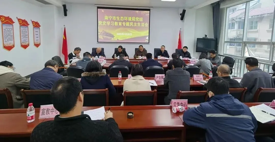 按照市委的统一安排部署,1月20日,南宁市生态环境局党组召开党史学习教育专题民主生活会,紧扣专题主题,密切联系实际,深刻查摆检视问题,深入开展批评和自我批评,明确整改措施和努力方向。市生态环境局党组书记、局长黄衍全主持会议并讲话。市委市直机关工委副书记、市二级巡视员熊瑞光同志,市纪委监委驻市工信局纪检监察组四级主任科员宋彬源同志,市委党史学习教育第八巡回指导组成员黄雅静同志到会指导。