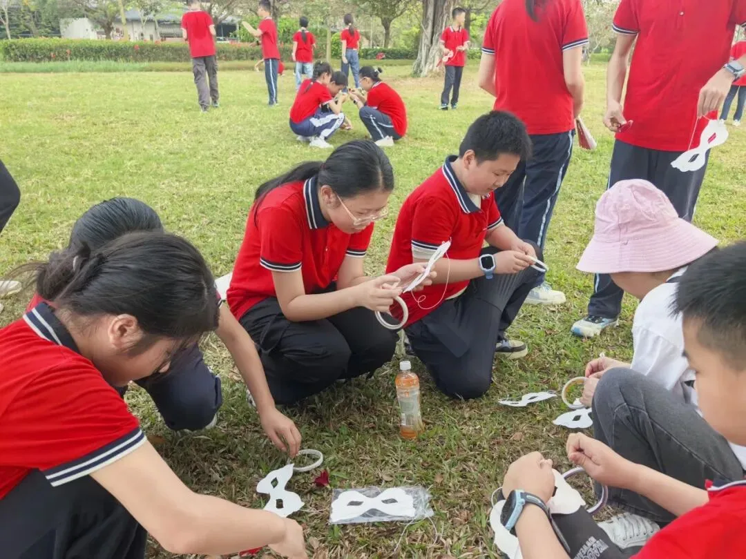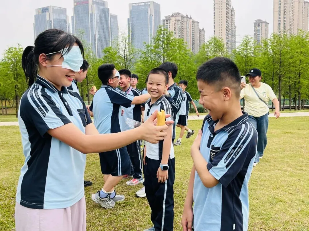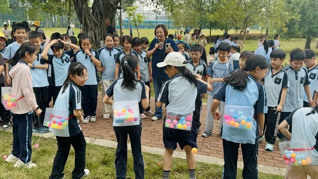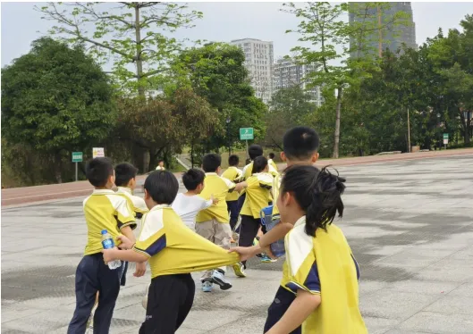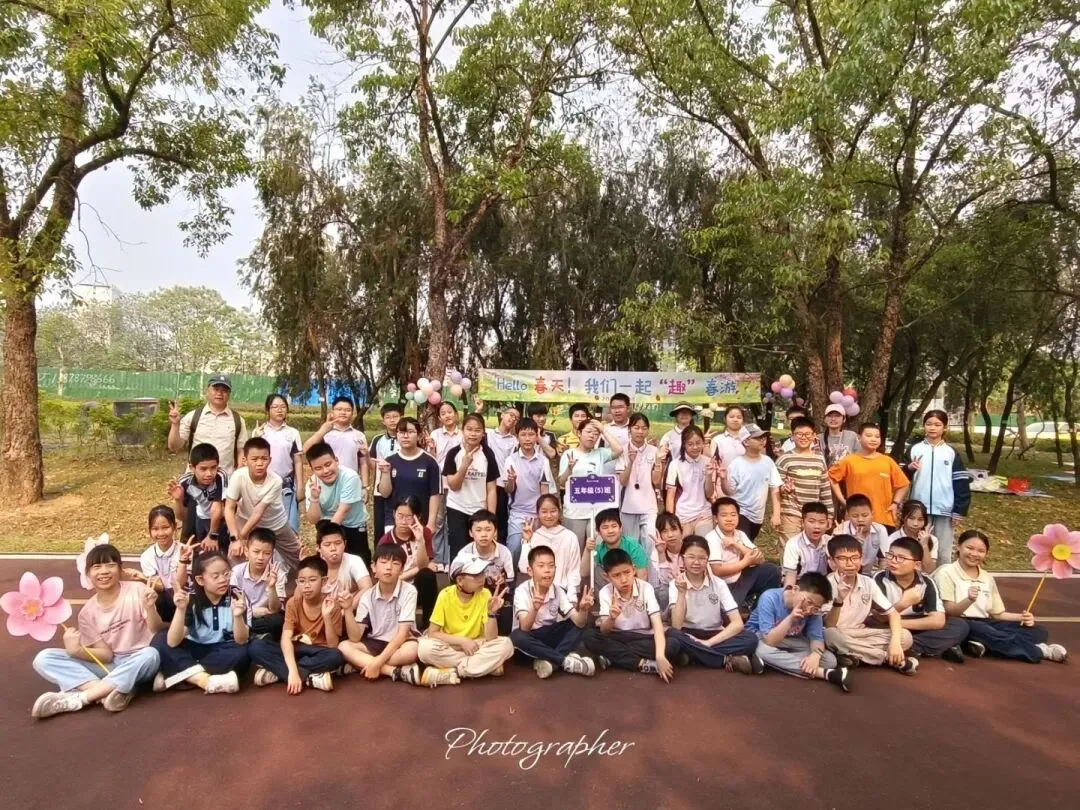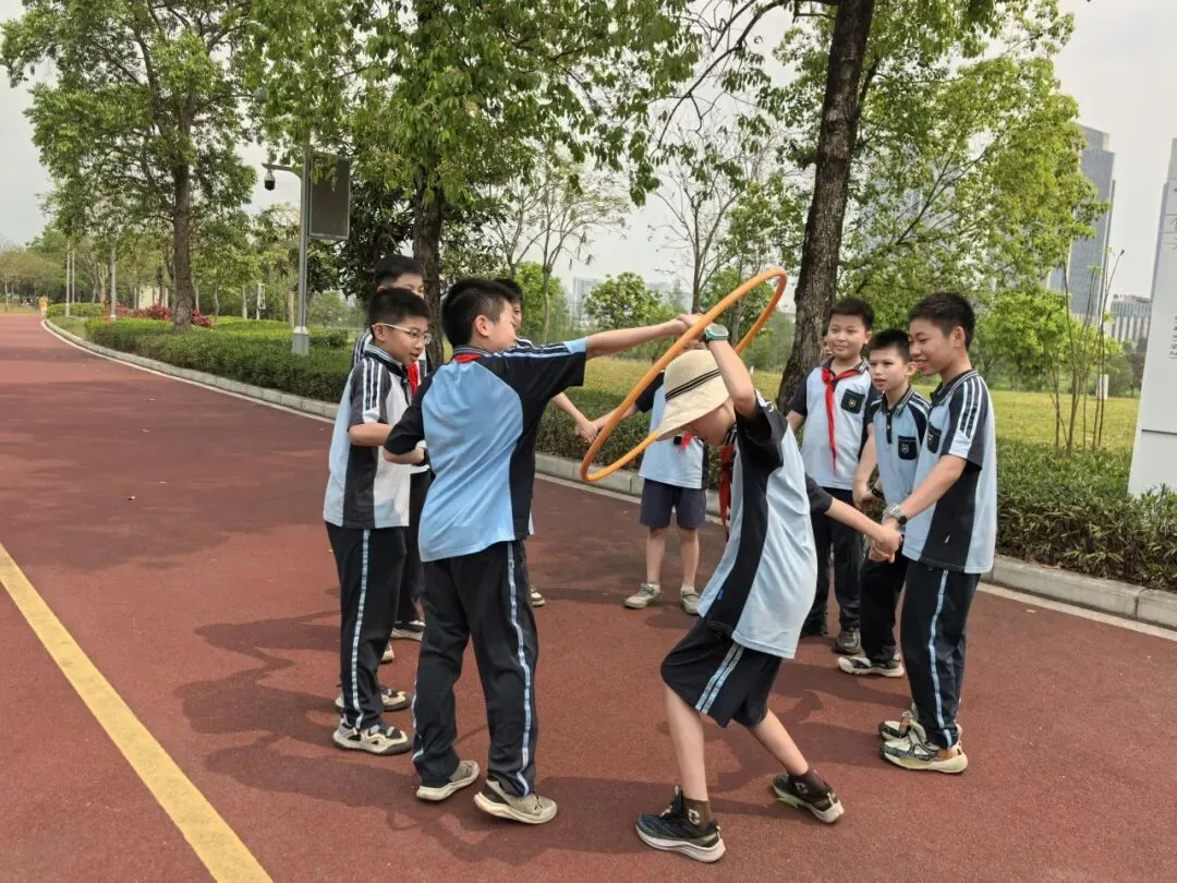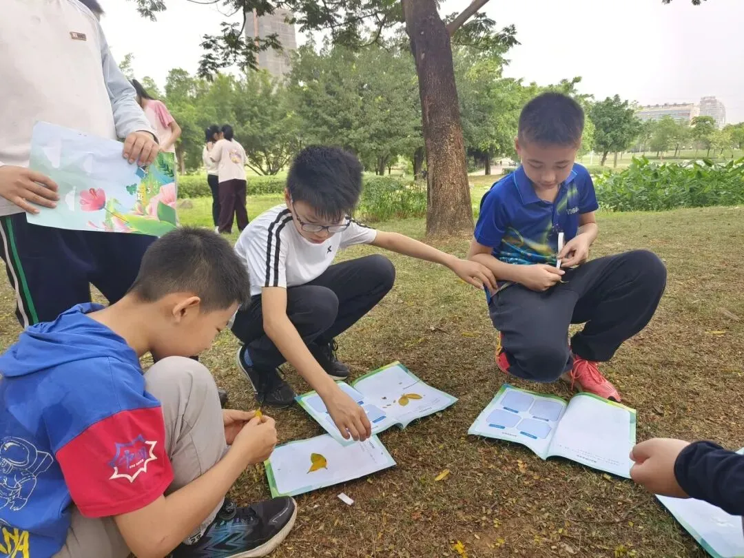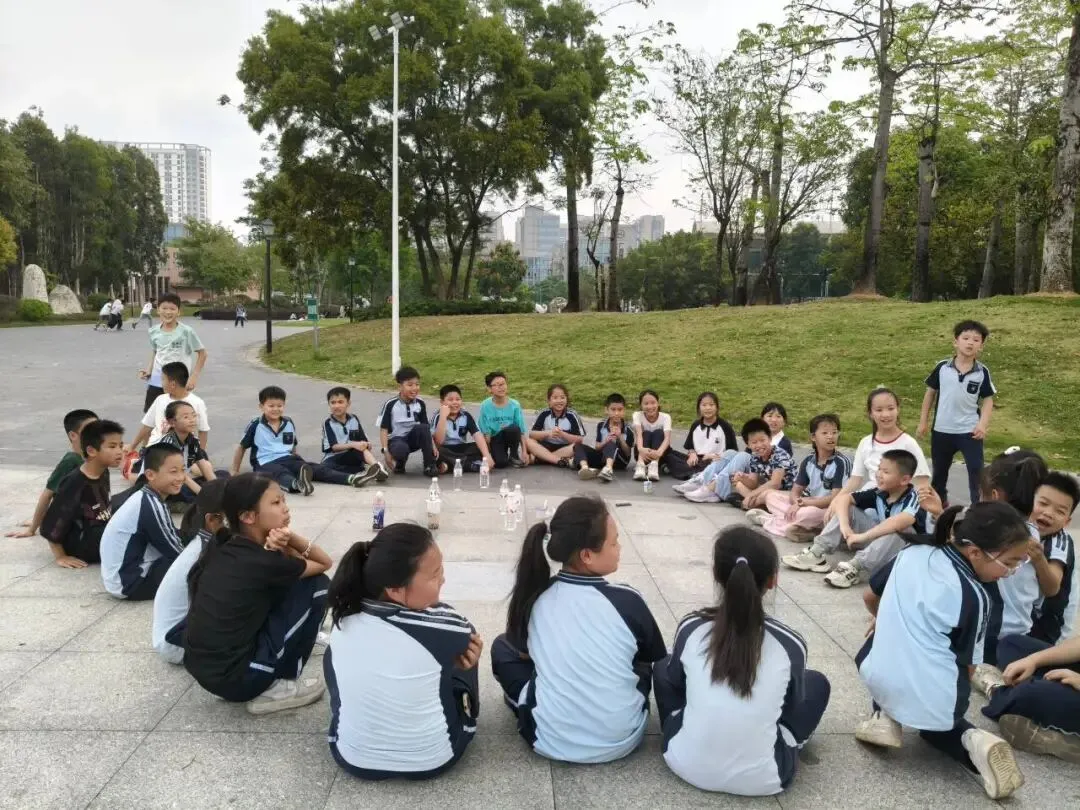 四年级各班在公园开展了丰富多彩的研学活动,欢声笑语回荡在林间。