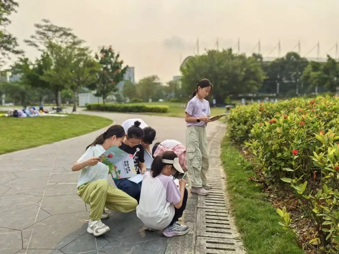 孩子们拿出画笔和画纸,席地而坐,认真描绘眼前的植物,有的画下含苞待放的花蕾,有的记录叶片的脉络纹理。