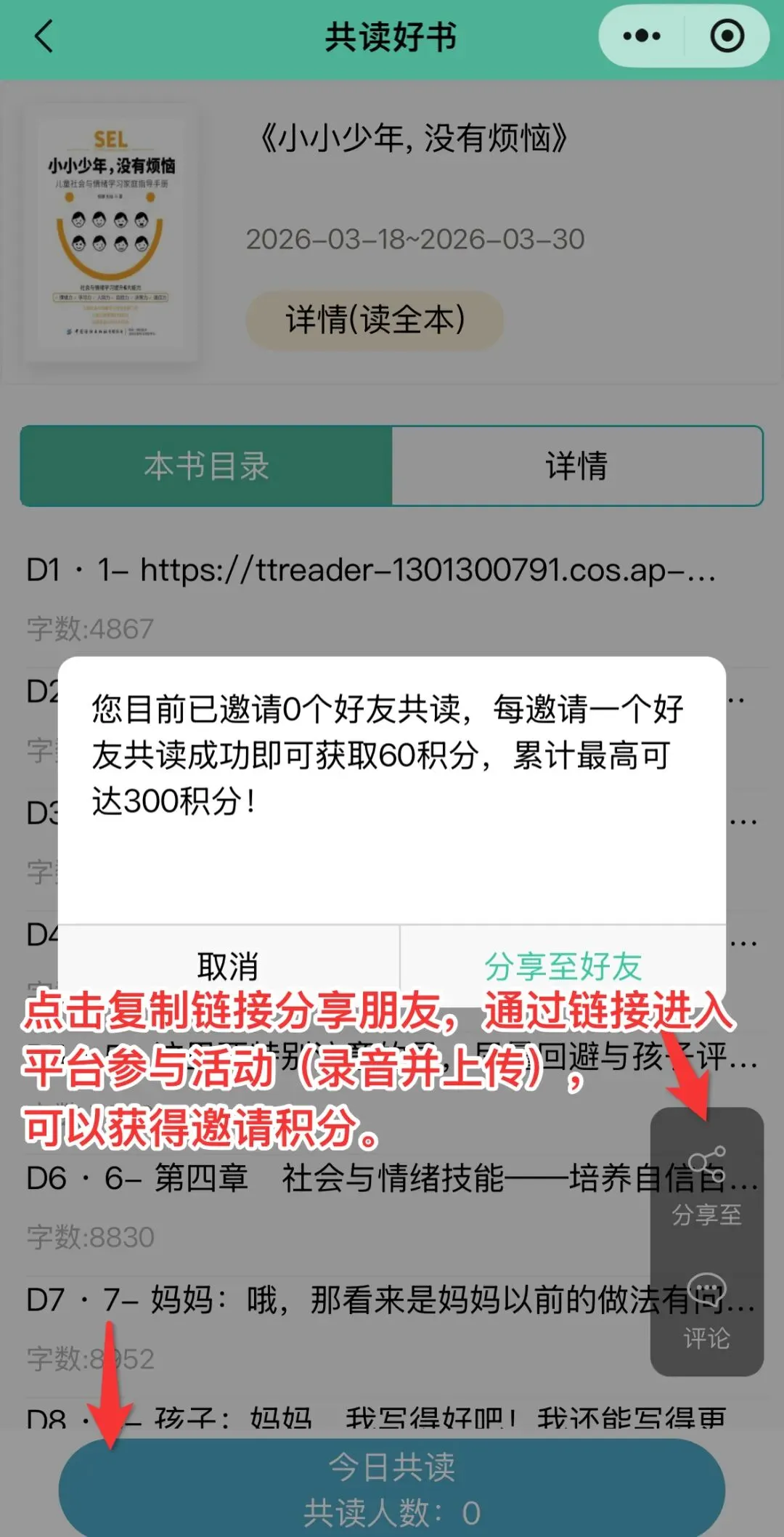 5.邀请朋友获得积分,首先该朋友账号必须是平台新用户,其次需要朋友通过你的邀请链接进入平台录音并分享。