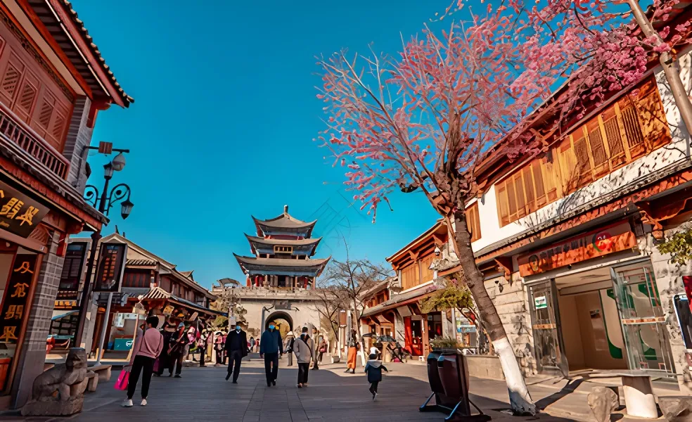 乘车前往文献名邦”【大理古城】(不含电瓶车35元/人,自理)(游览时间120分钟),游走于东西方文化交汇的【洋人街】,大理的古城犹如童话里藏在山里的一方城堡,远远望去高高的城门上面是苍劲的“大理”二字,那厚重的墙体、凝重的颜色无一不透达出它沧桑而久远的故事。晚餐后,入住酒店。