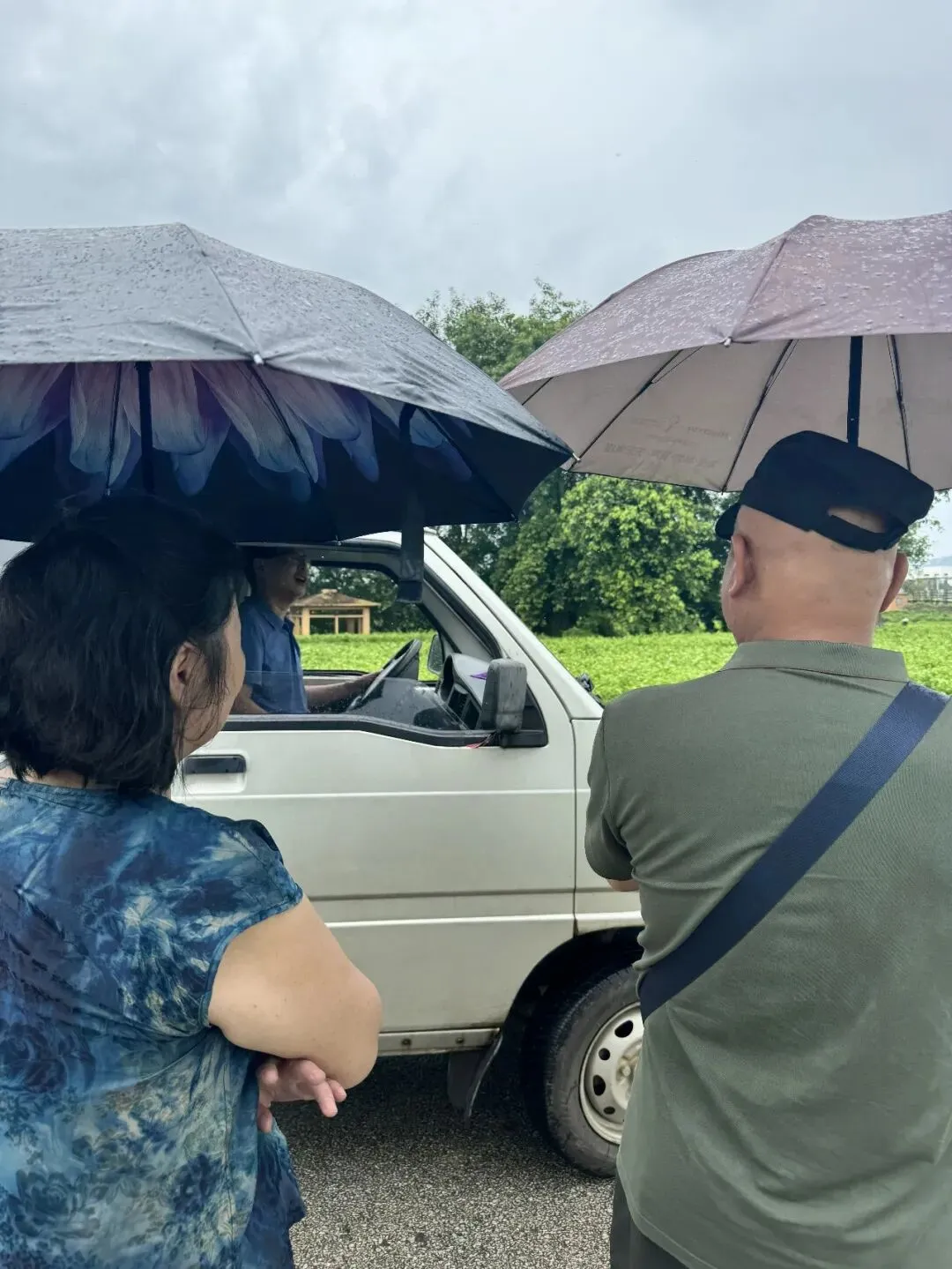 雨中摘花的花农