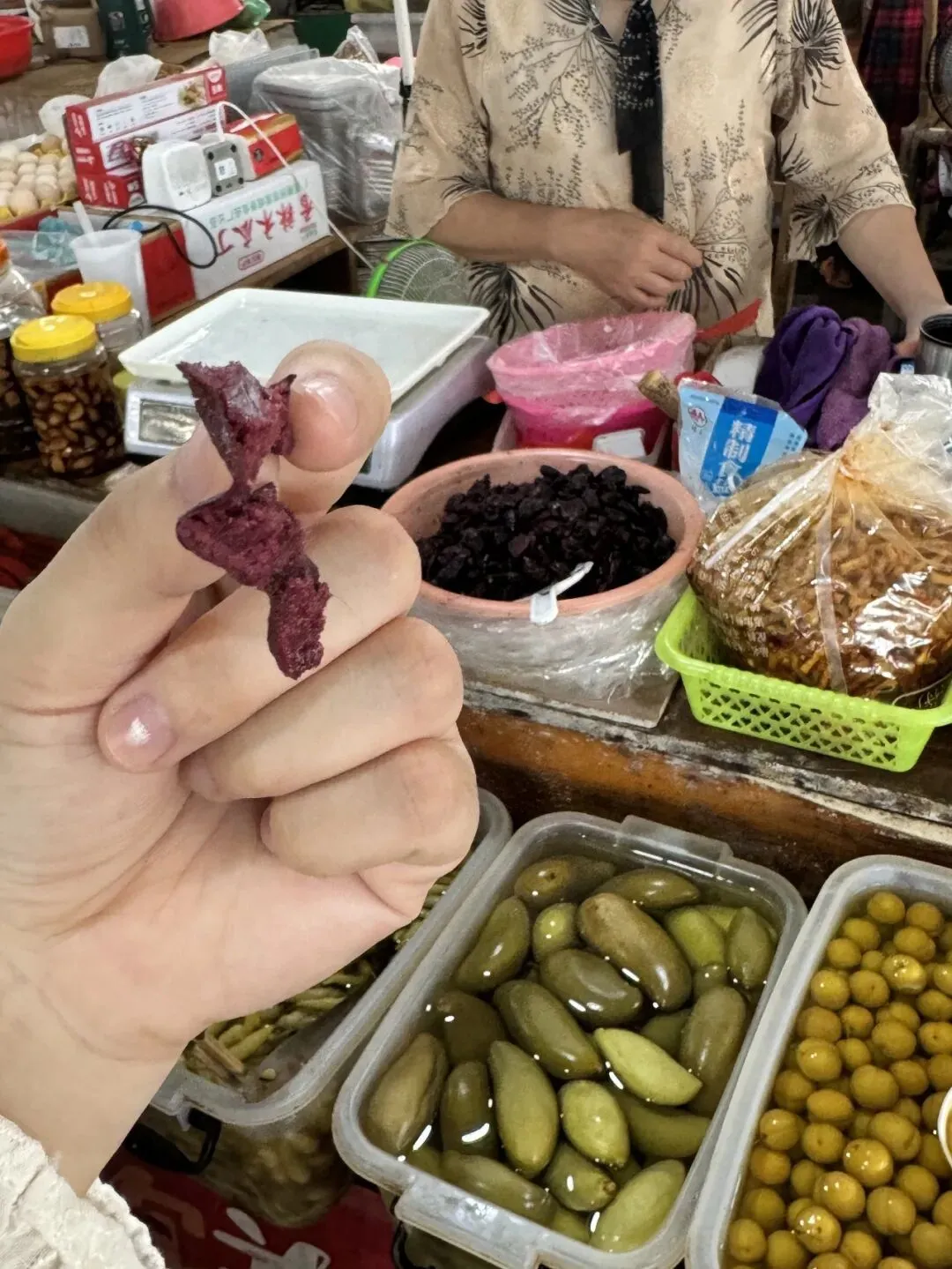 和老年人出门的必备项目就是去逛菜市,看到一个黑黑的很奇怪的东西,摊主让我尝一下,压根不敢......