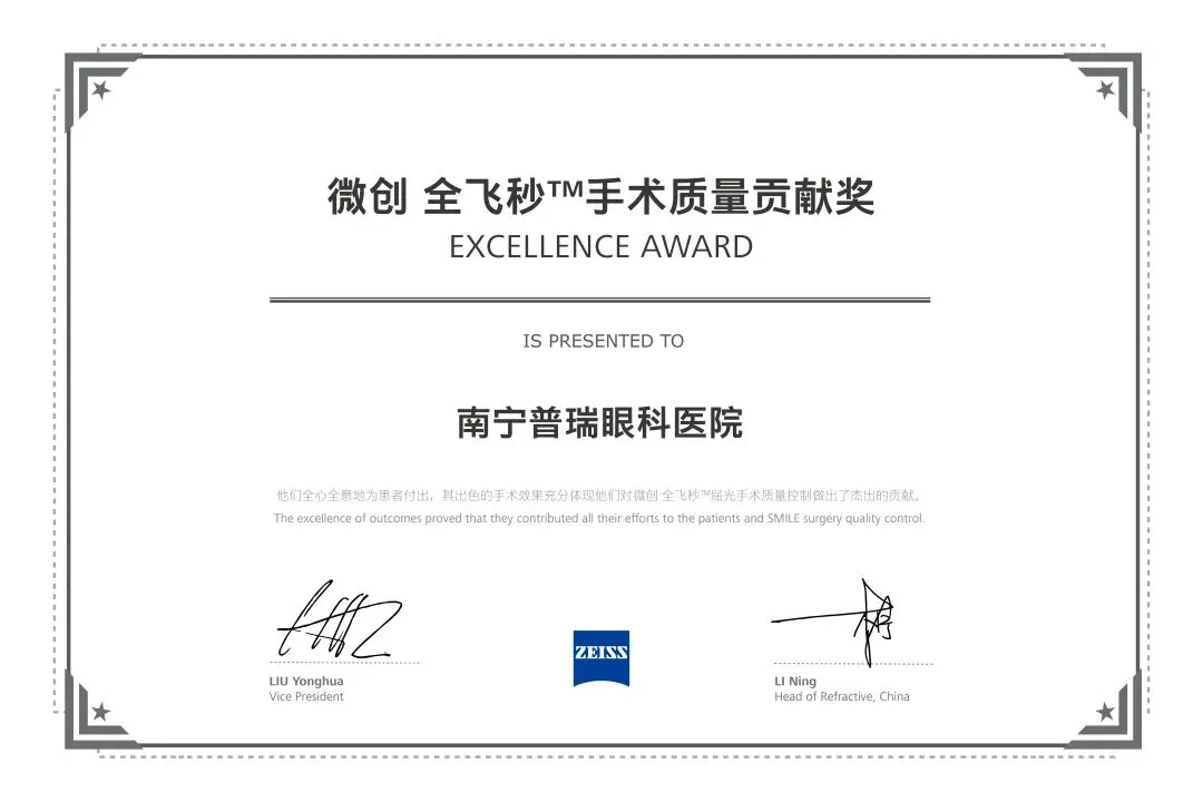 该认证聚焦以患者为中心的全流程服务升级,标志着南宁普瑞眼科在术前精准评估、术中微创操作、术后视觉质量、长期随访管理等方面实现全方位优化,可为患者提供更舒适、更清晰、更稳定、更安心的摘镜体验。