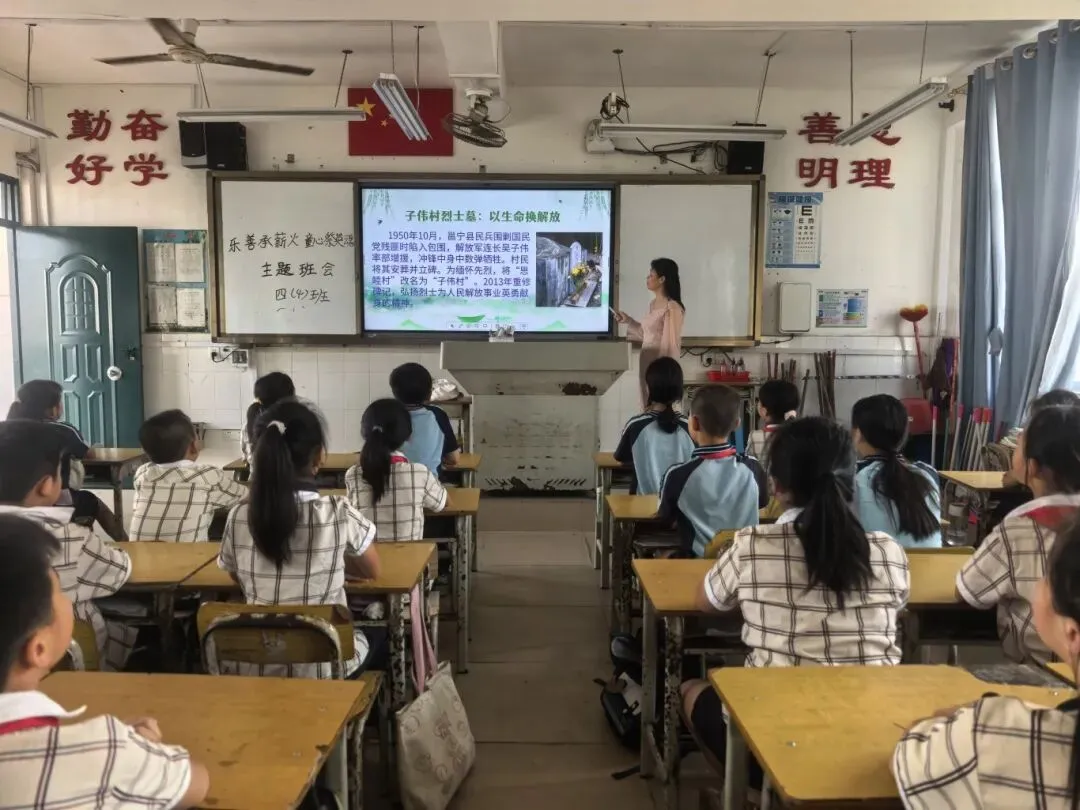 那马镇中心学校通过主题班会深情讲述解放军连长吴子伟率部驰援被围民兵、全歼匪徒而壮烈牺牲以及慕凤亭变卖家产投身革命、雷朗廷坚守革命根据地的本土英雄故事,让孩子们走近身边的红色历史,感悟英烈初心。同时通过线上“云祭扫”、诵读红色经典等形式,进一步深化红色教育成效,引导学生在缅怀中铭记,在感悟中传承,厚植爱党爱国爱家乡的深厚情感。