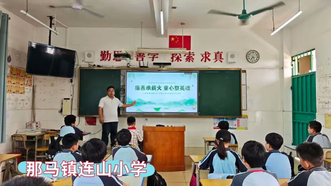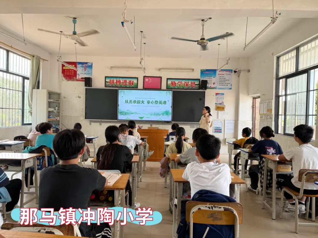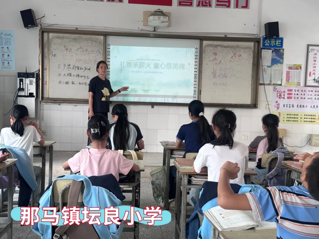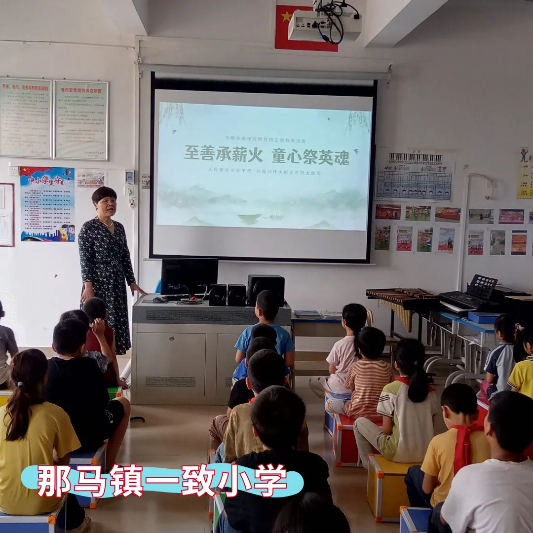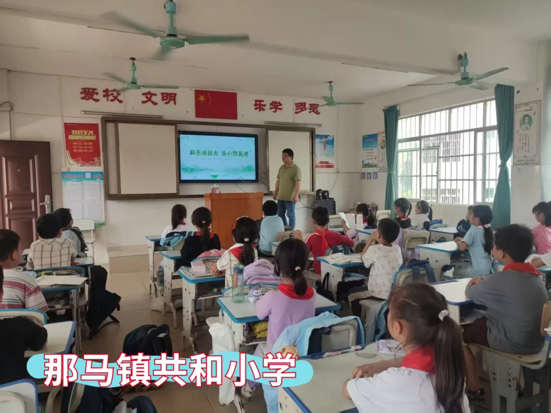那马镇共和小学、那马镇坛良小学、那马镇那僚小学、那马镇连山小学、那马镇冲陶小学、那马镇一致小学同步开展主题教育活动,各校通过主题班会,深情讲述吴子伟、慕凤亭、雷朗廷三位本土英雄的感人事迹。同学们结合自身学习经历分享心得感悟,在聆听与交流中铭记历史、致敬英雄,从小树立远大理想,砥砺强国之志,勇担时代使命。