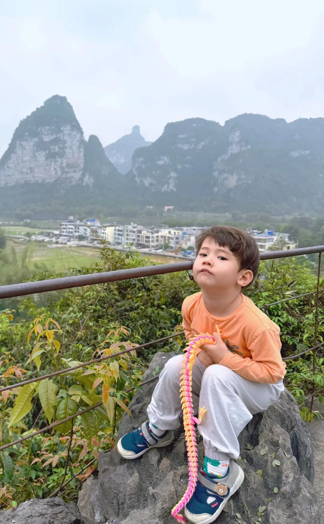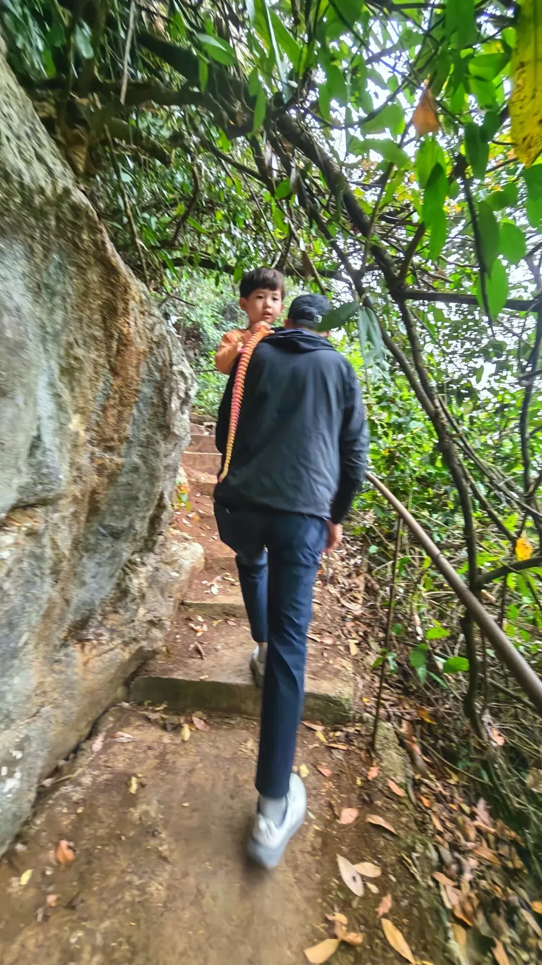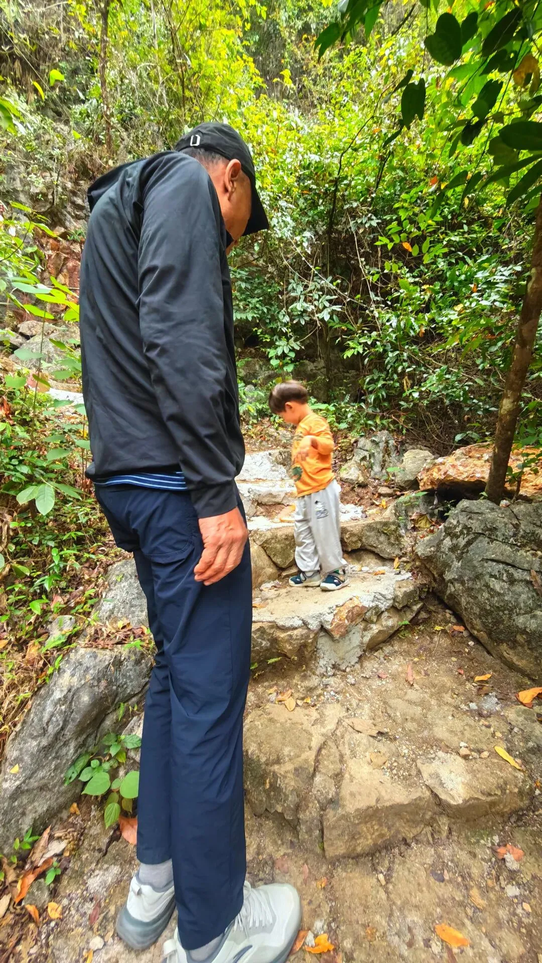 4月2号当天,因怕下大雨我们匆匆忙忙从德天瀑布赶回来,结果天气逐渐转亮并没有下雨。吃饭后时间尚早,小宝姥爷查了一下周边景点,发现离我们酒店不远处有一个名叫“龙头山”的小众景点,决定开车去看看。