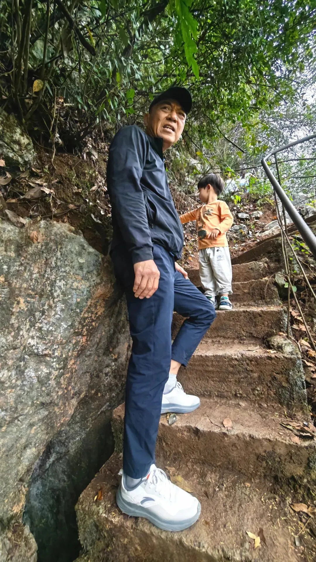 观景台上的游客寥寥无几,我们在观景台拍够了照片和视频,天色已晚,小宝姥爷催促我们赶紧下山去找地方吃晚饭。这100米十分陡的台阶,上来不易,下去也不轻松,因为太陡,稍不留神就会出状况,何况我们还带着小宝。