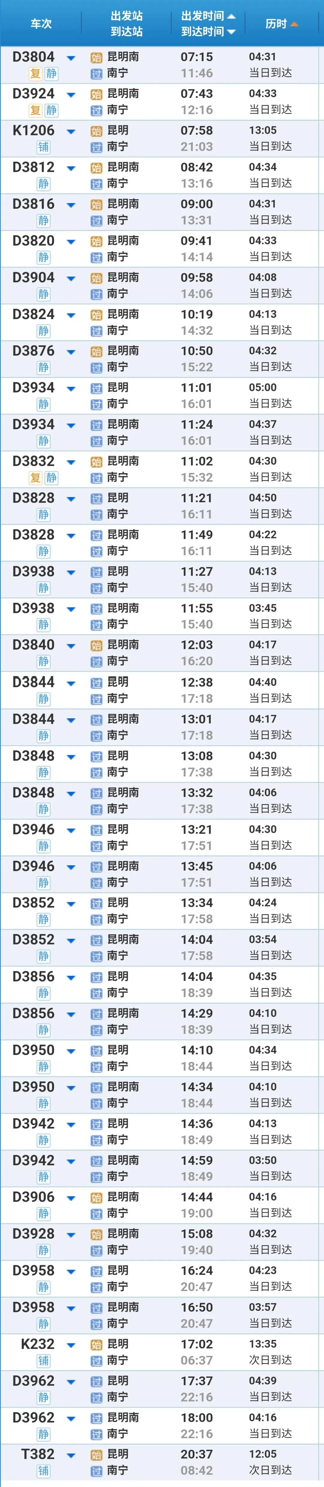 (以上列车信息仅供参考,详情请查询12306)