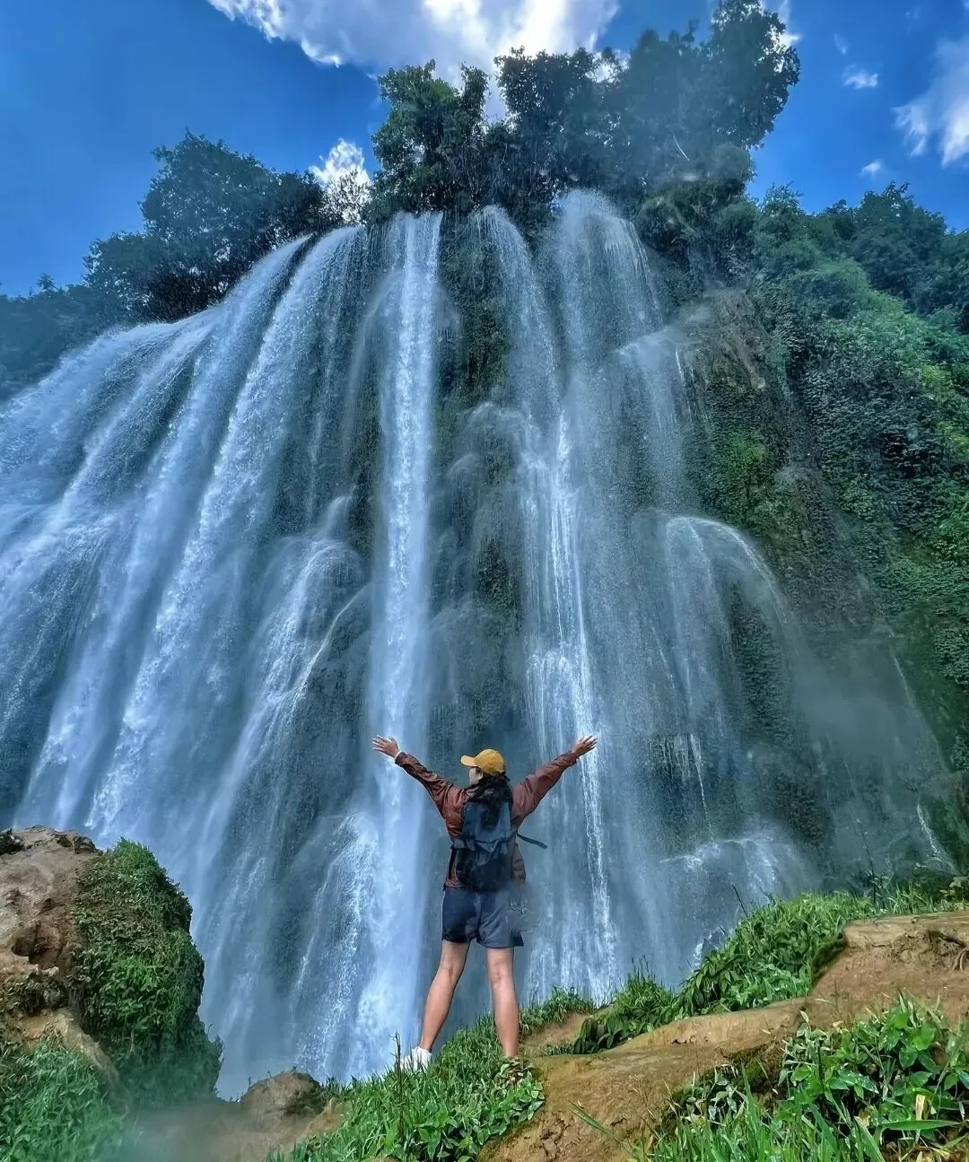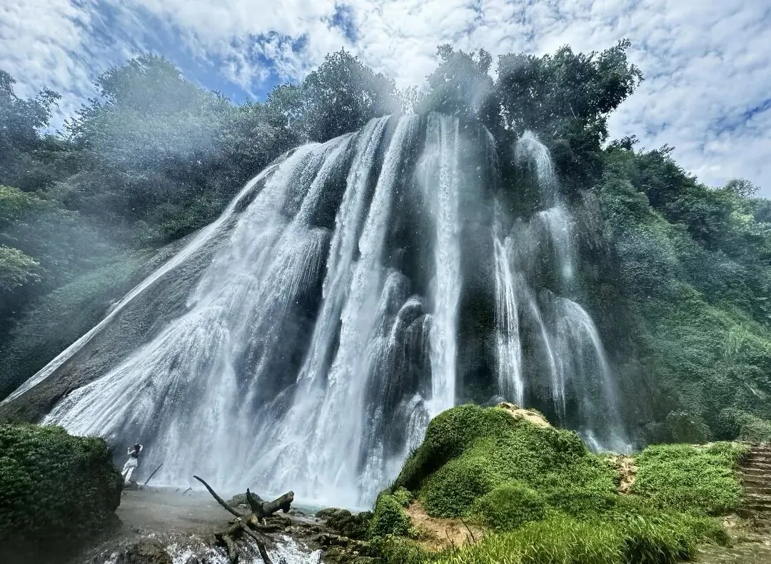 三叠岭瀑布行程结束后前往德天跨国瀑布,德天跨国瀑布横跨中越两国,形成中国的德天瀑布,越南的板约瀑布。因景观独特被誉为亚洲第一大跨国瀑布、中国最美的六大瀑。