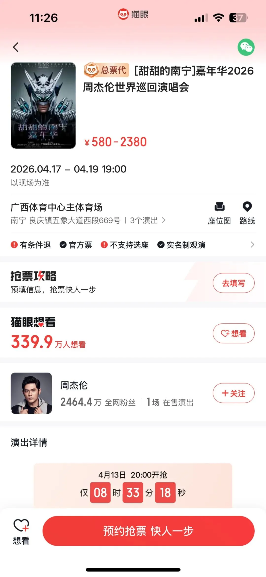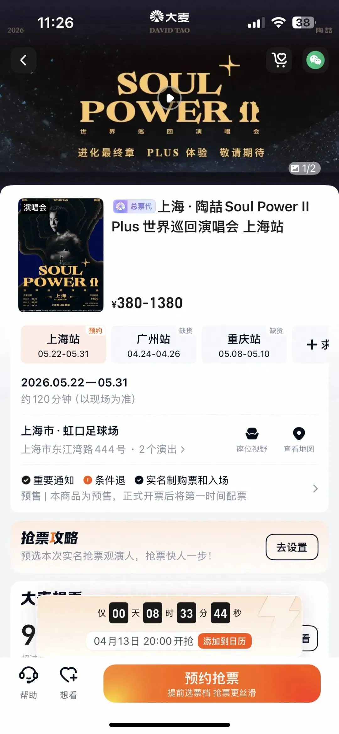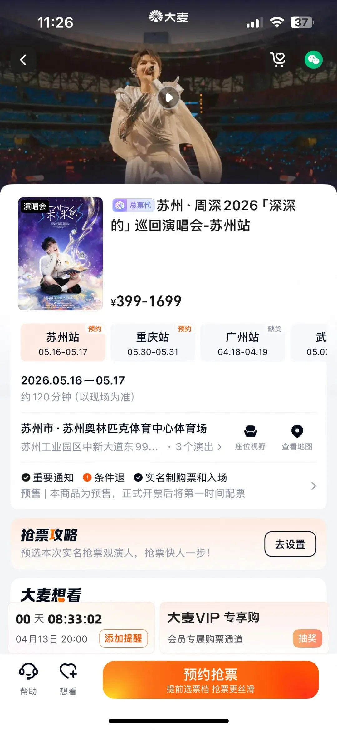 南宁周杰伦/上海陶喆/苏州周深 今晚八点开票 高命中代拍来