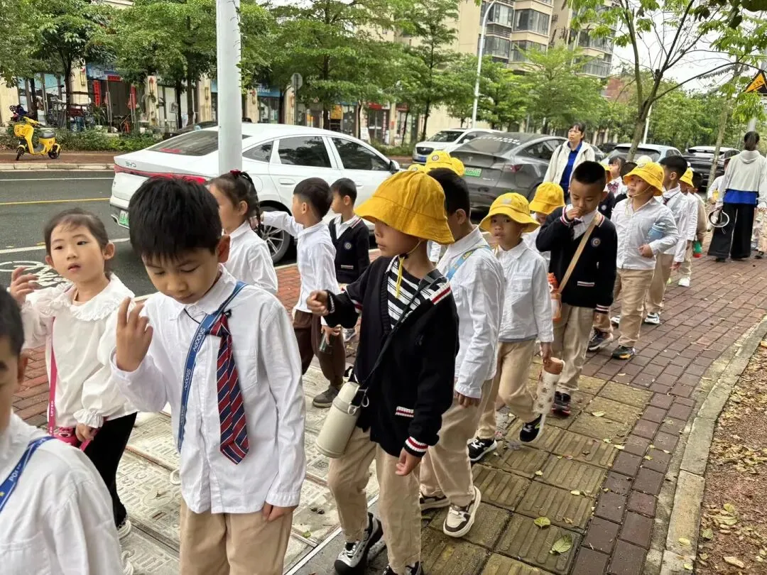 徒步前往小学的过程中,孩子们遵守队列秩序、相互陪伴,锻炼了耐力与集体意识,感受了集体出行的快乐,增强了规则意识与团队协作能力。