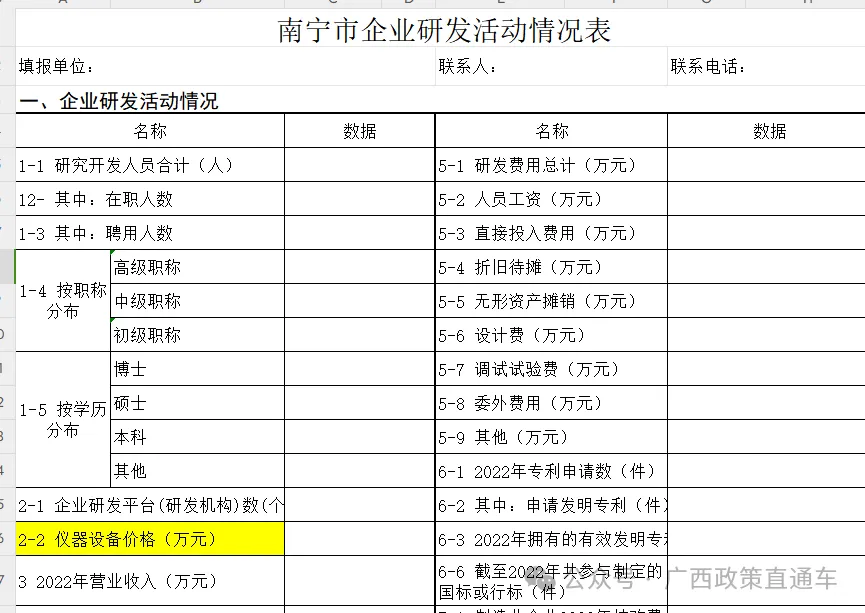 答:本次申请所涉及表格见群公告,可以下载相应附件进行填写。除“2022年度南宁市企业研发投入经费财政奖补申请表”以及2022年企业研发活动情况表有模板可供下载外,其他材料可根据企业在研发过程中形成的真实材料如实提供。