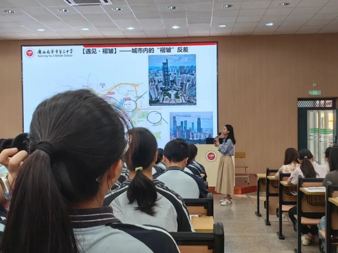 活动的第一个环节是莫少雯老师执教高一课例《城镇化——解锁南宁的褶皱与新生》。