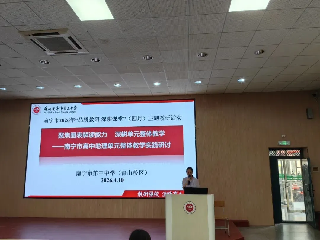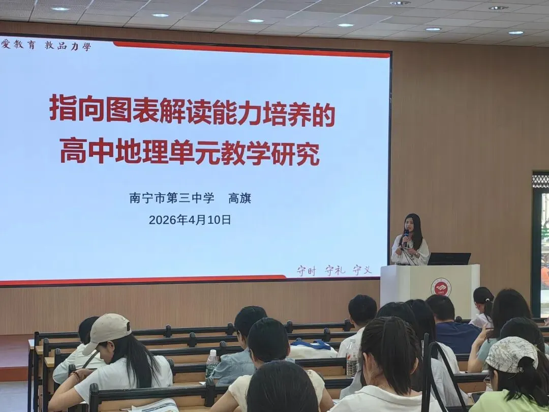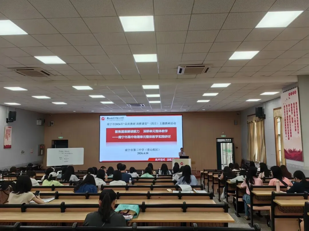 为深入贯彻地理课标中“强化图表情境育人”“突出综合思维与实践力培养”的核心要求,精准对接高考评价体系“素养导向、能力为重、情境为基”的命题趋势,切实破解当前地理教学中图表教学碎片化、能力训练浅表化、单元整合形式化等现实困境,南宁市第三中学于2025年4月10日上午在青山校区阶梯教室一举办“指向图表解读能力培养的高中地理单元教学研究”主题教研活动。