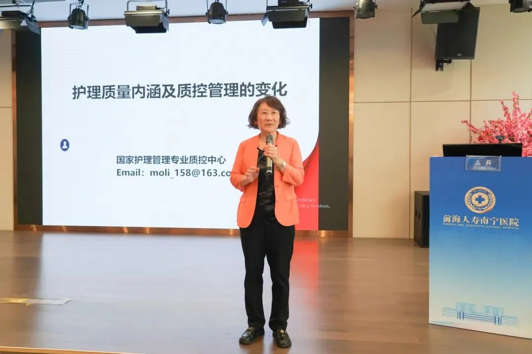 首先,国家卫生健康委医院管理研究所护理管理与康复部主任么莉就《护理质量内涵及质控管理的变化》进行专题授课。该环节由前海人寿南宁医院护理部主任杨丽担任主持。