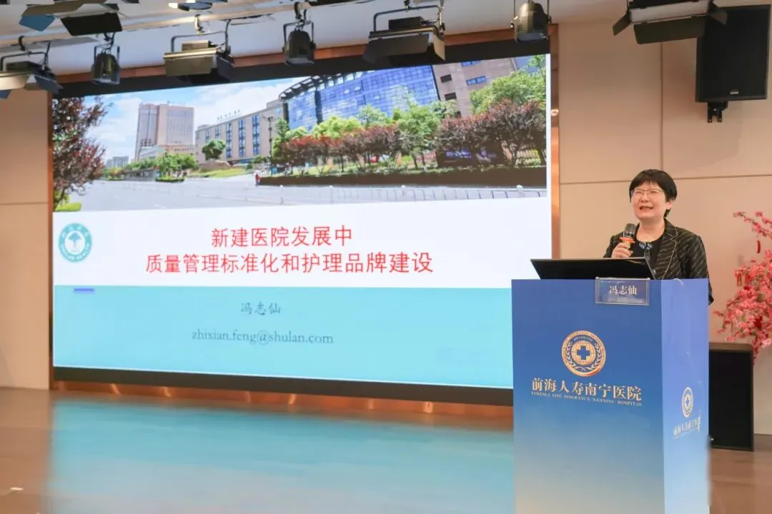 接着由中国非公立医疗机构协会护理分会会长、浙江树兰(杭州)医院副院长冯志仙作《新建医院发展中质量管理标准化和护理品牌建设》专题授课。该环节由前海人寿广西医院护理部副主任崔妙玲主持。