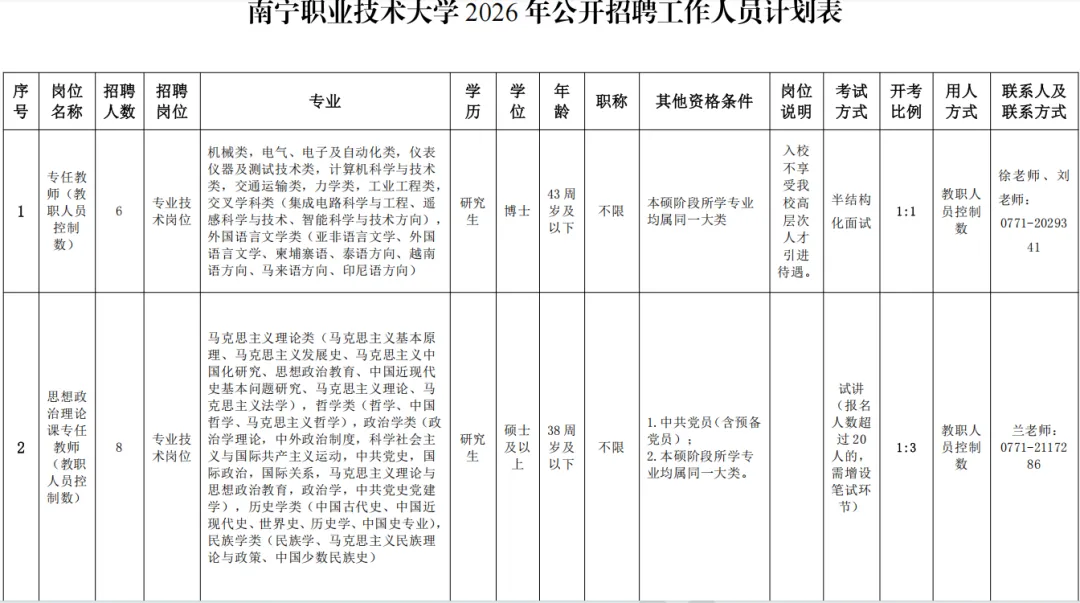 来源:南宁本地宝 综合广西医科大学第一附属医院、南宁职业技术大学、广西人才网、南宁市第六人民医院