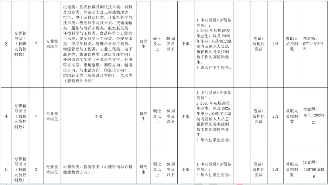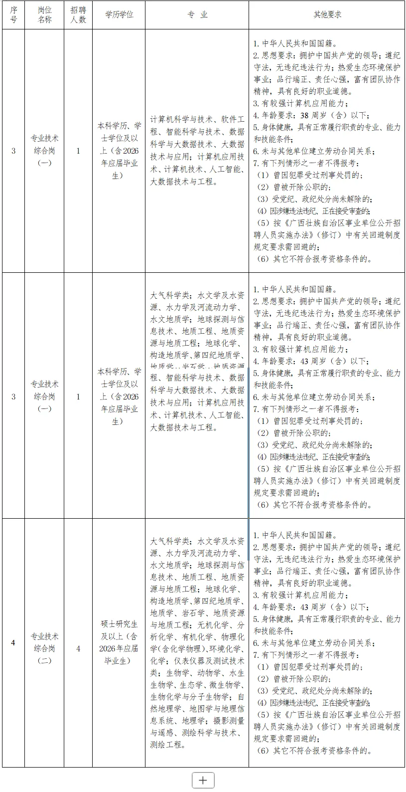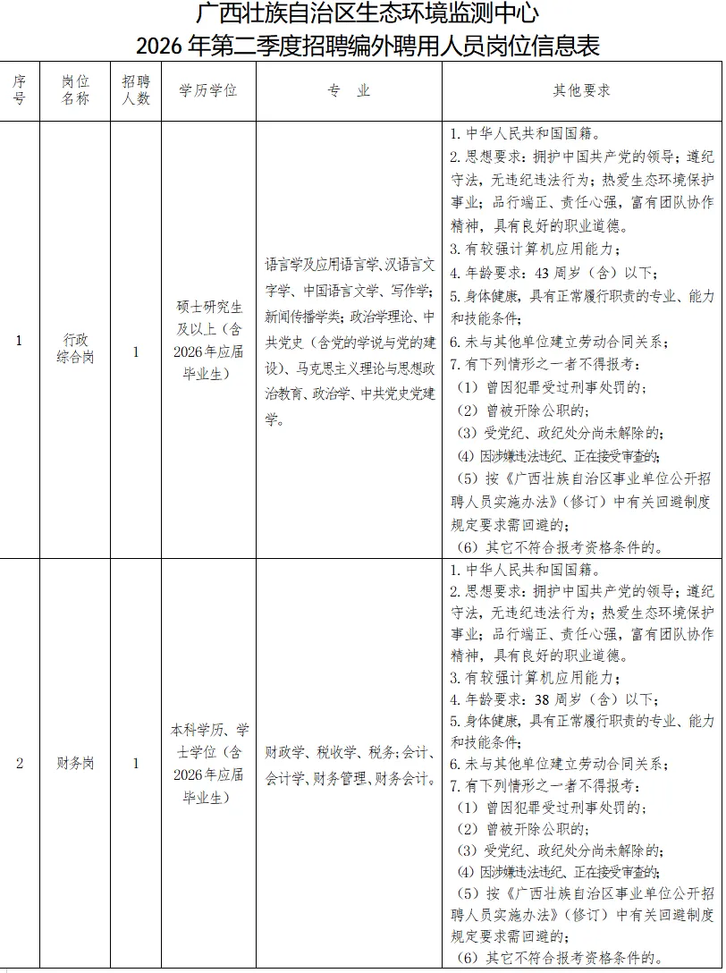 本次公开招聘编外聘用人员7名,招聘岗位相关专业参考《广西壮族自治区考试录用公务员专业分类指导目录(2026年版)》。