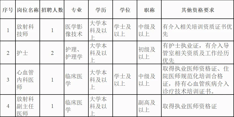 博士岗位:全年长期招聘(我院将根据报名情况分批次安排面试,具体以医院通知为准),招满即止。