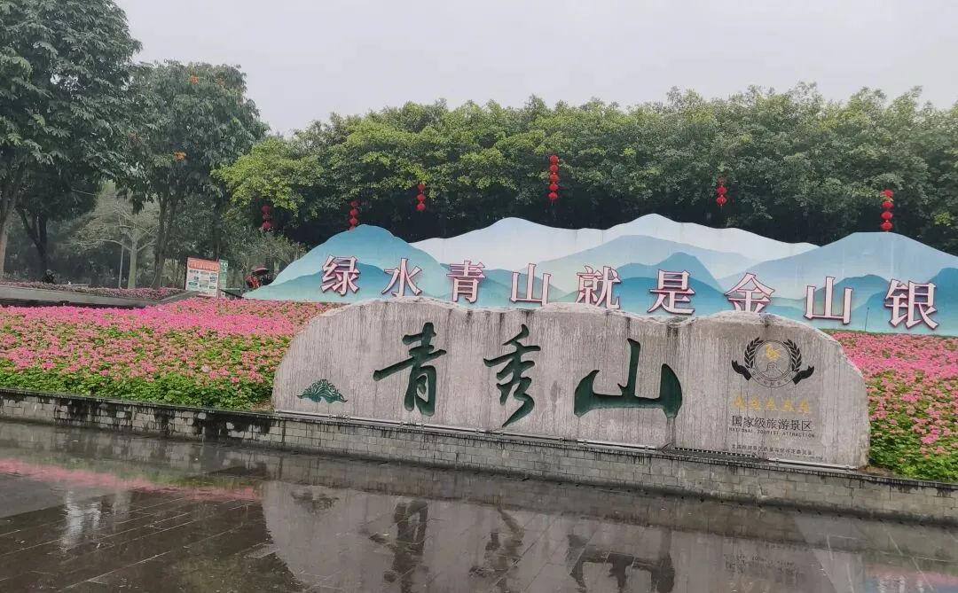 从北门进去,“青秀山”三个黛色大字与周围葱茏的绿融为一体,和谐自然,毫无突兀之感。
