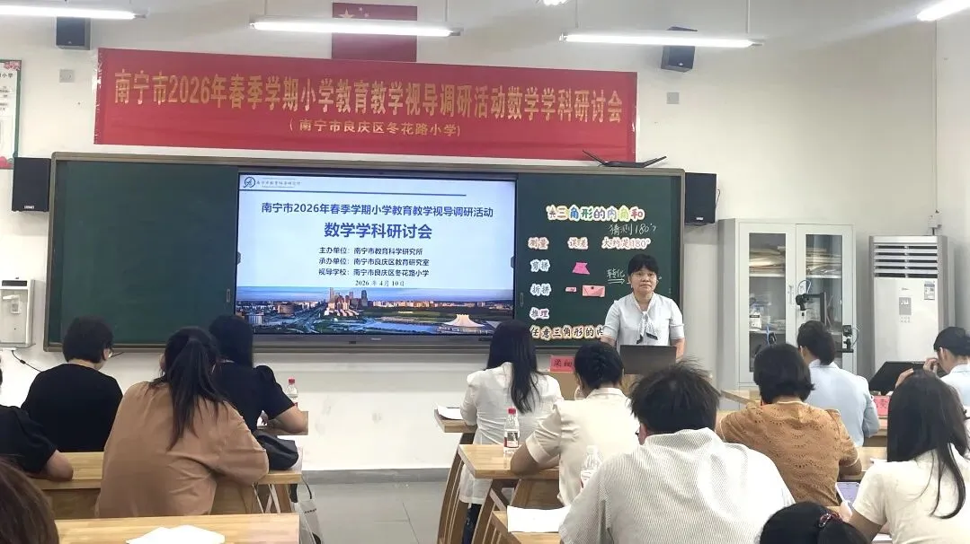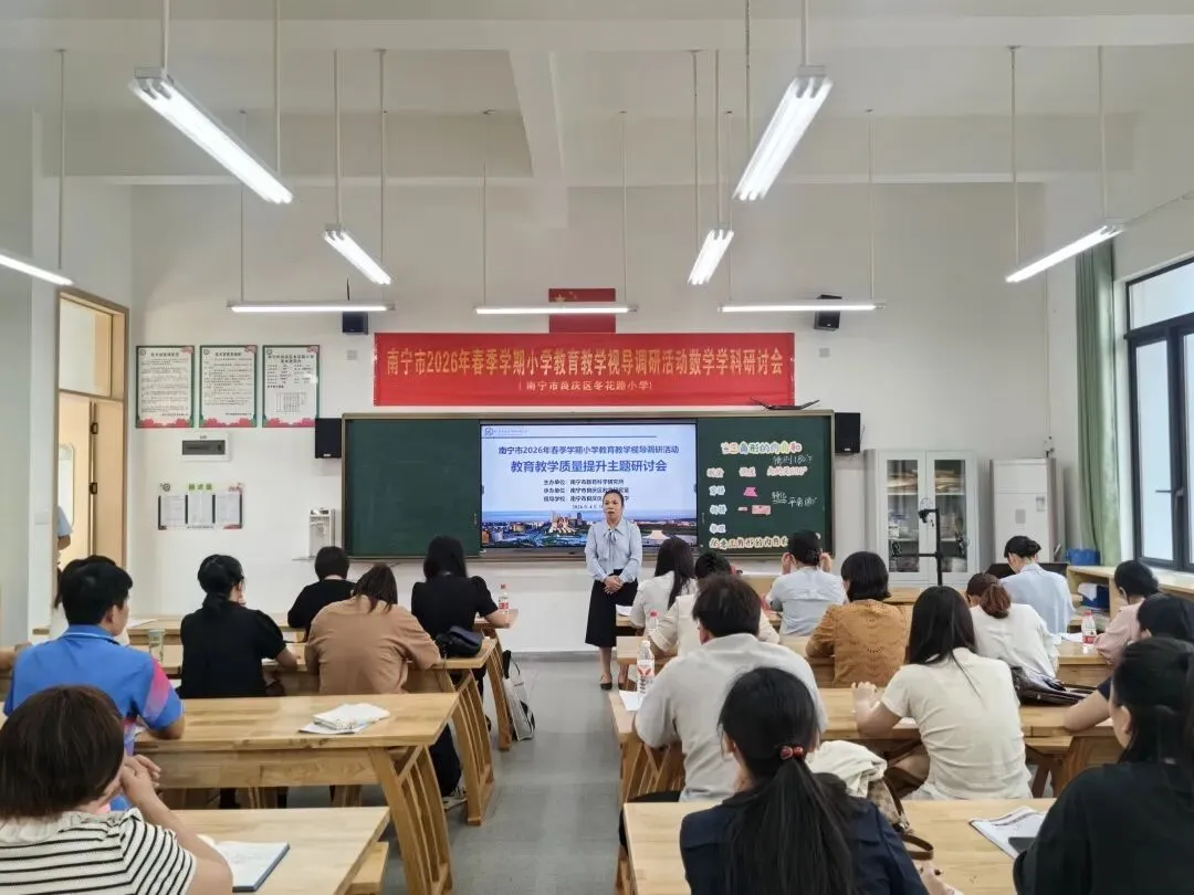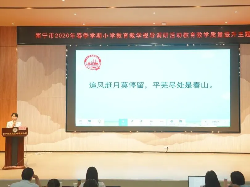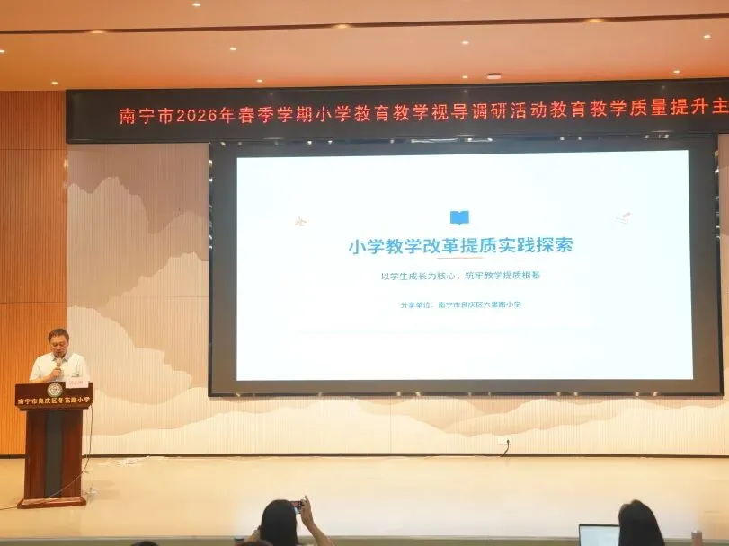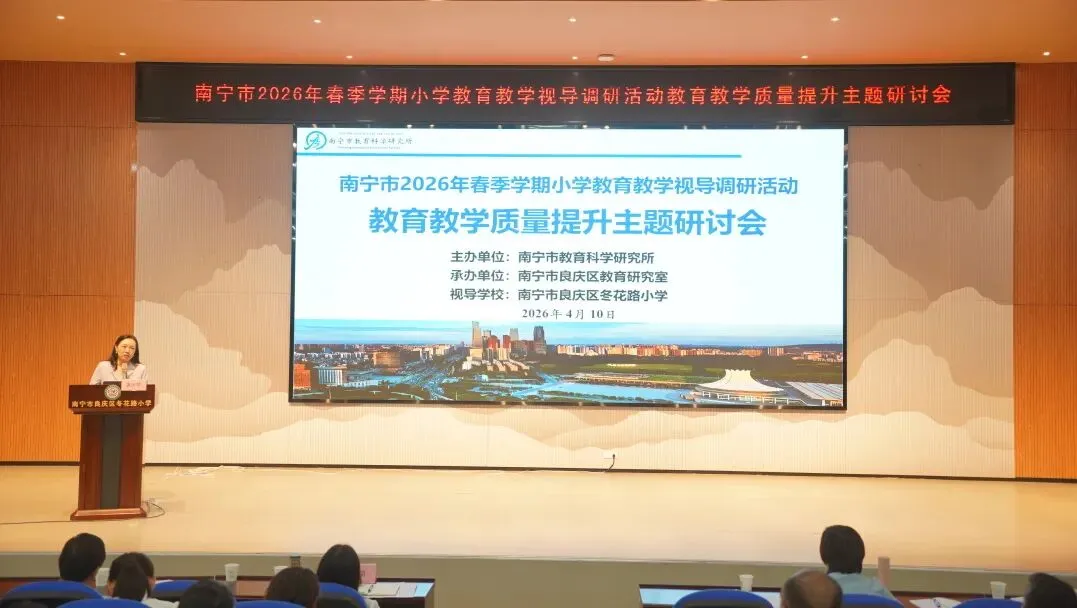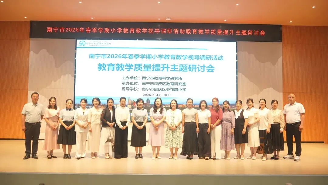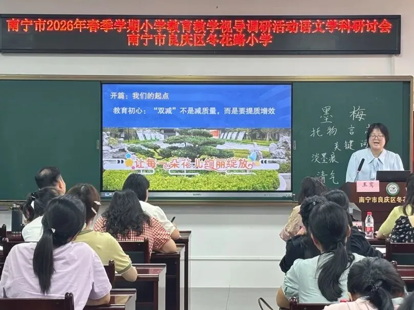 为推动“双减”提质工作深入实施,强化学校常规管理,进一步提高南宁市教育教学质量,扎实推进“品质教育学在南宁”新时代教育高质量发展系统工程,2026年4月10日上午,南宁市2026年春季学期小学阶段学校教育教学视导调研活动在南宁市良庆区冬花学区顺利开展。
