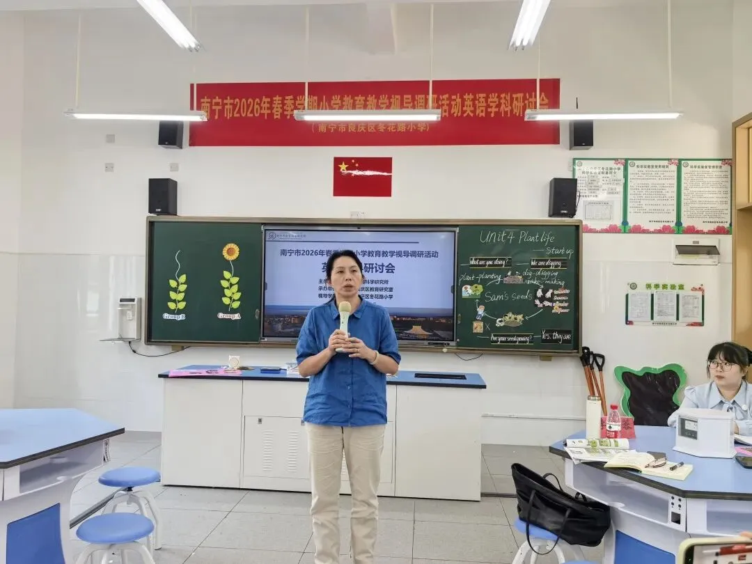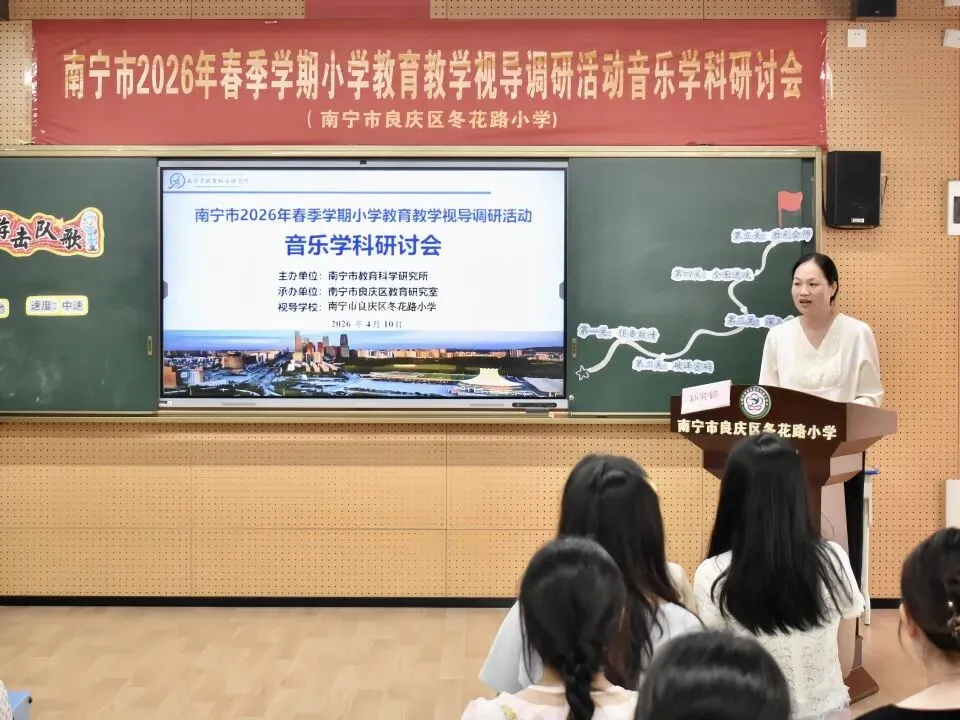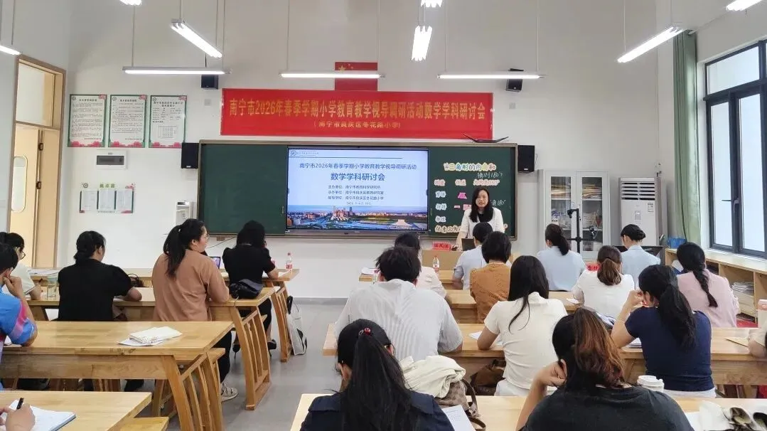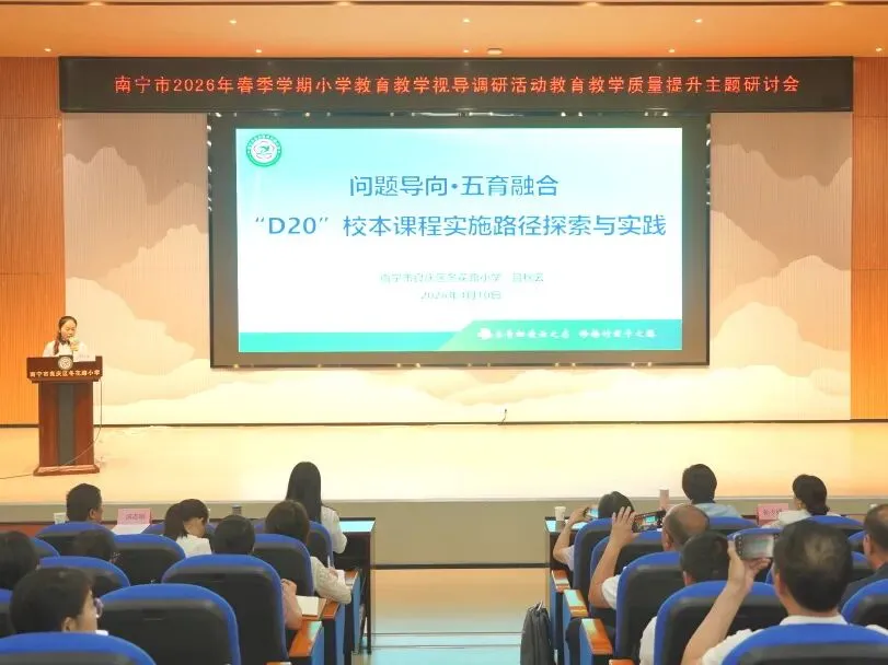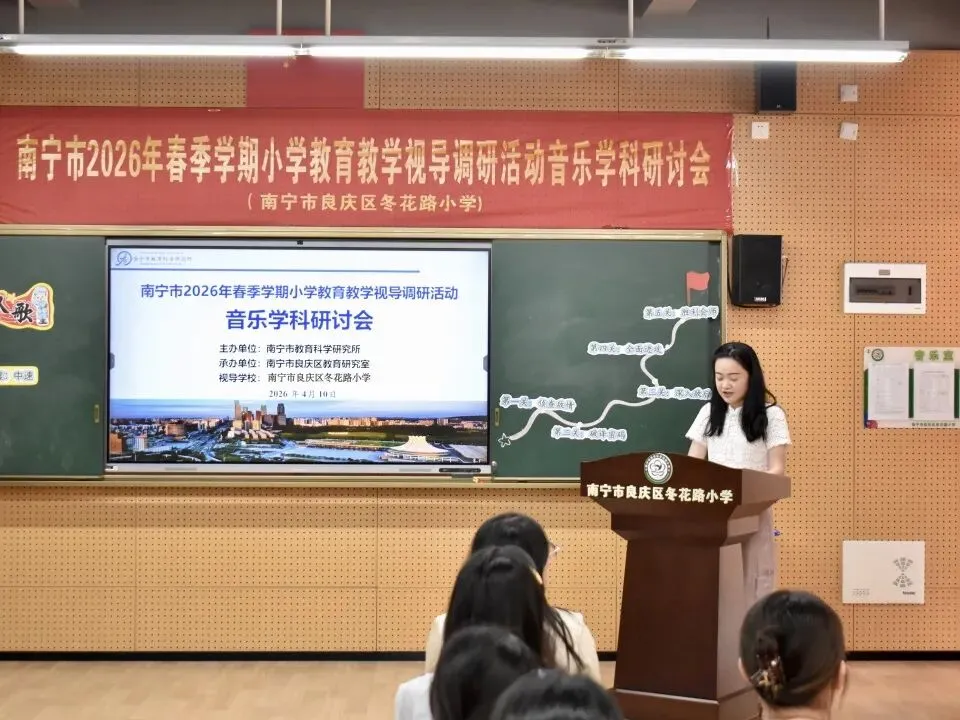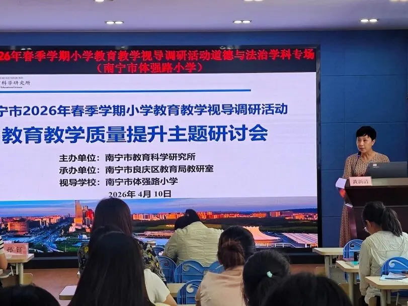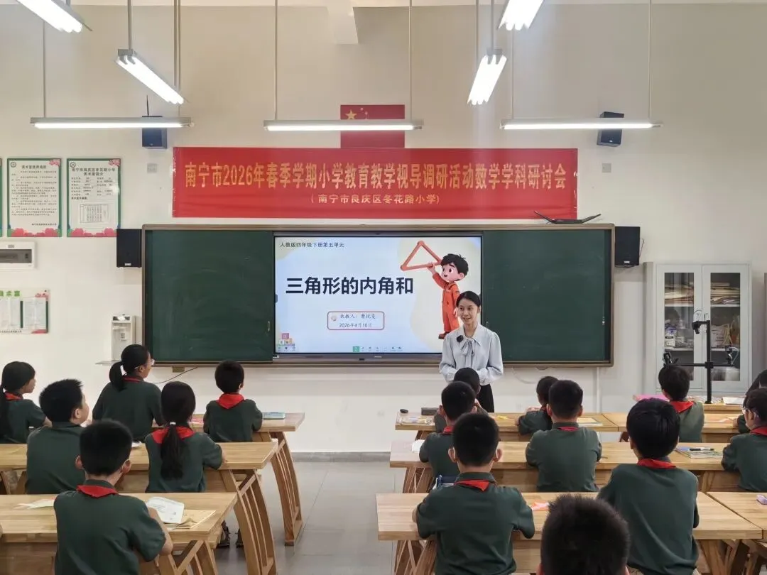 为推动“双减”提质工作深入实施,强化学校常规管理,进一步提高南宁市教育教学质量,扎实推进“品质教育学在南宁”新时代教育高质量发展系统工程,2026年4月10日上午,南宁市2026年春季学期小学阶段学校教育教学视导调研活动在南宁市良庆区冬花学区顺利开展。