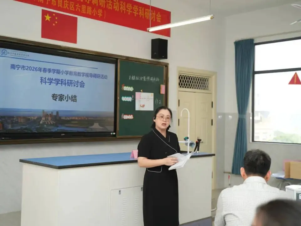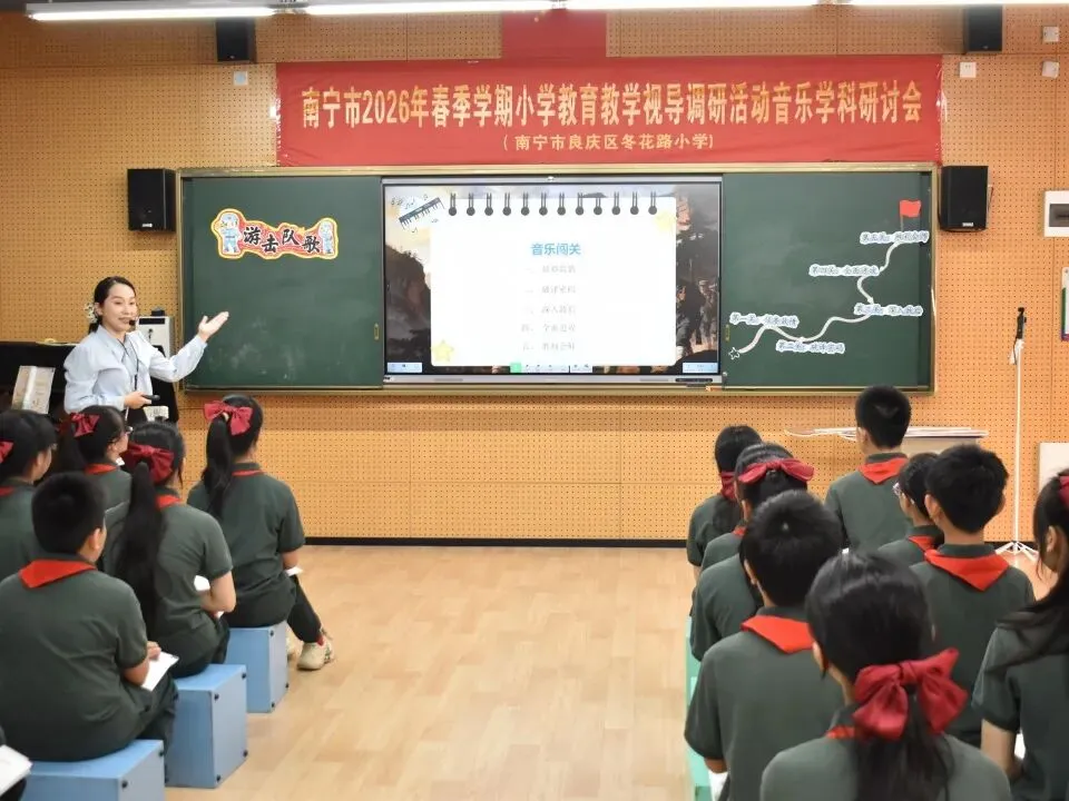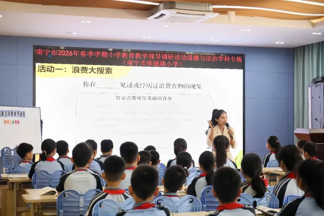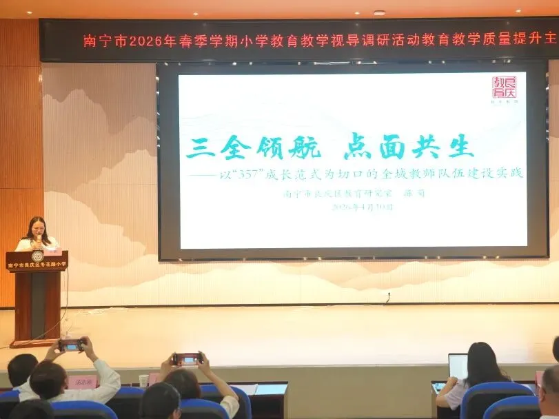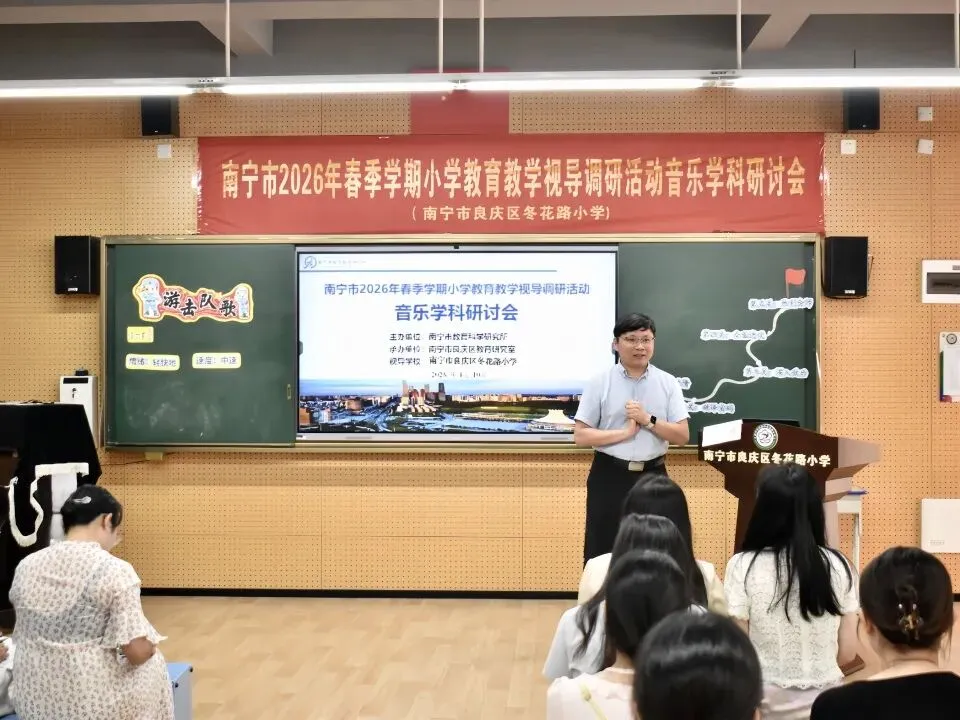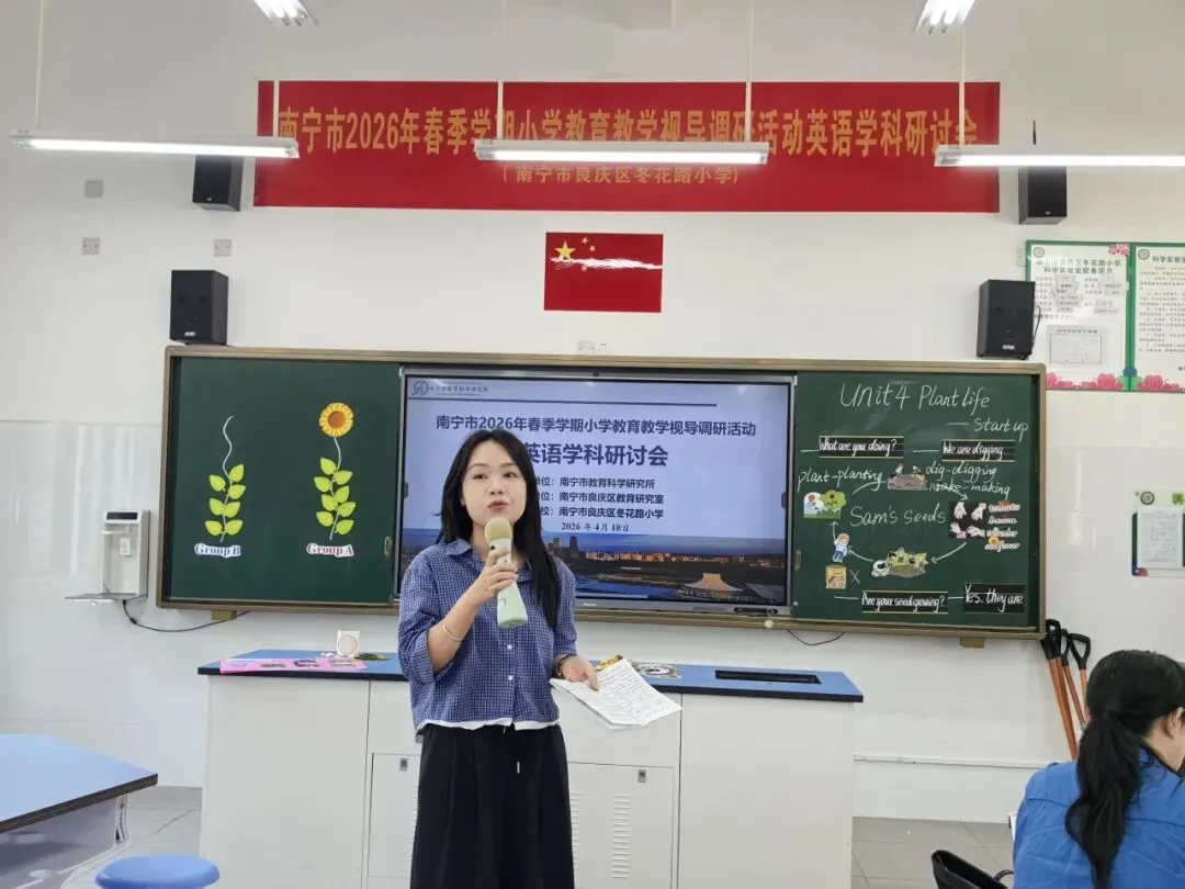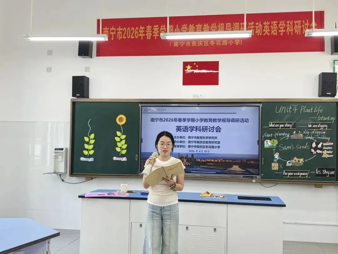为推动“双减”提质工作深入实施,强化学校常规管理,进一步提高南宁市教育教学质量,扎实推进“品质教育学在南宁”新时代教育高质量发展系统工程,2026年4月10日上午,南宁市2026年春季学期小学阶段学校教育教学视导调研活动在南宁市良庆区冬花学区顺利开展。